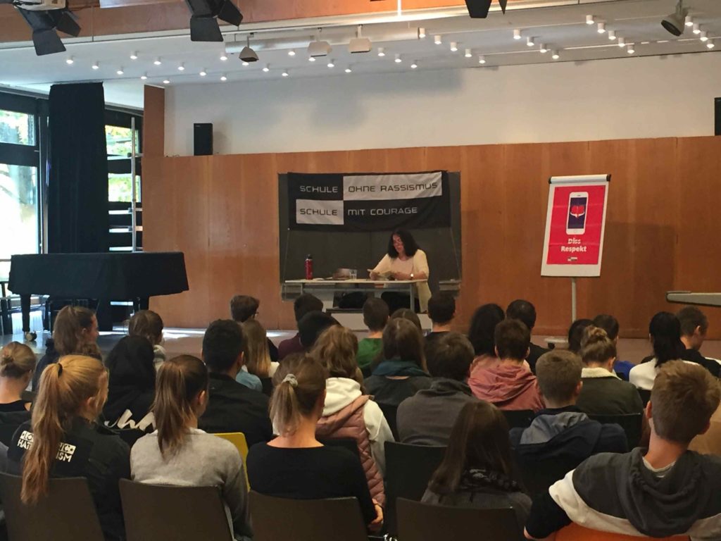 Am 15.10.2019 hielt unsere Schulpatin Freya Klier, die Bürgerrechtlerin, Autorin und Botschafterin für Demokratie ist, für die gesamte Jahrgangsstufe J2 eine Lesung im Musiksaal. In dem 90-minütigen Besuch berichtete sie über ihre Erfahrungen mit Überwachung durch die Stasi und politische Verfolgung in der DDR, die sie persönlich erlebt hat.