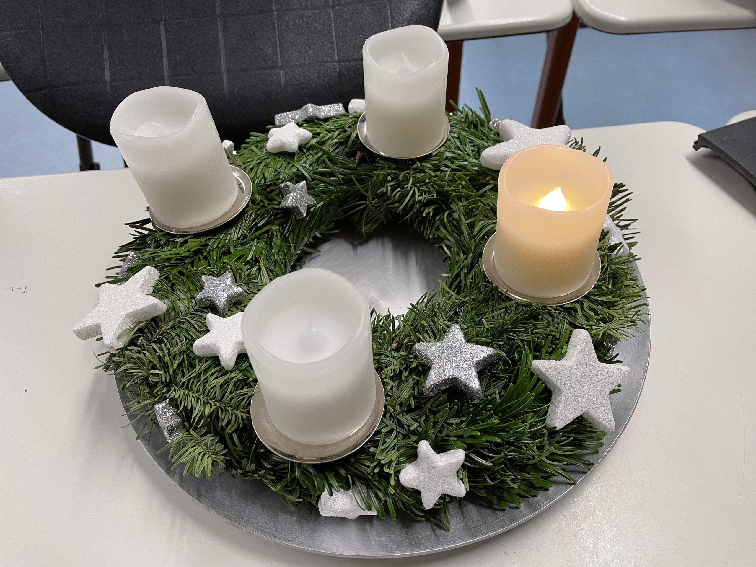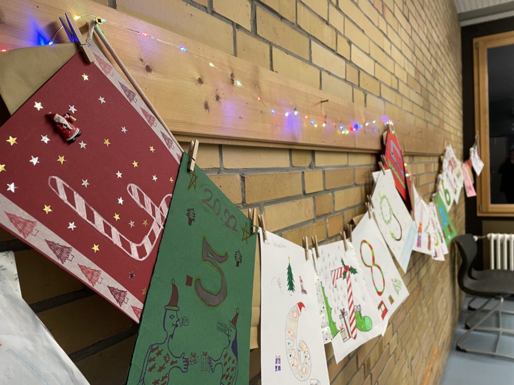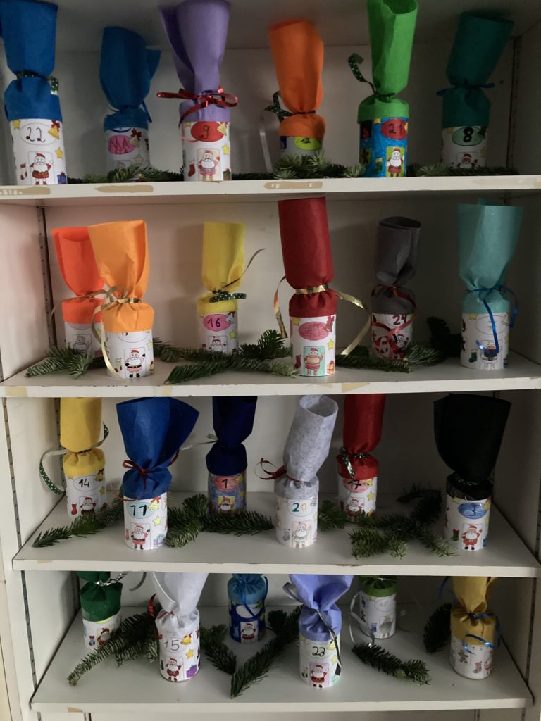 Alle Kinder haben fleißig gebastelt, ihre Klassenzimmer mit Lichterketten dekoriert und es richtig gemütlich gemacht. Es gibt sogar Adventskalender, bei denen sich jeden Tag ein anderes Kind der Klasse über eine kleine Überraschung freuen darf. Während die Adventskalender in den fünften Klassen liebevoll von den Kindern mit ihren Klassenlehrerinnen gestaltet wurden, gibt es in der Klasse 5D sogar noch einen zusätzlichen Adventskalender, den Gergana Atanasova und Eloane Reichert mit viel Hingabe für ihre Mitschüler*innen gebastelt haben. Außerdem gestaltete Lenya Unkauf einen Adventskranz, der nun jeden Tag alle Kinder und Lehrkräfte mit seinen LED-Kerzen erfreut. Auch Gäste im Klassenzimmer der 5D nutzen den Kranz gerne für die vorweihnachtliche Stimmung. Bei so einer tollen Atmosphäre kann das Warten auf Weihnachten ja nur schön sein!