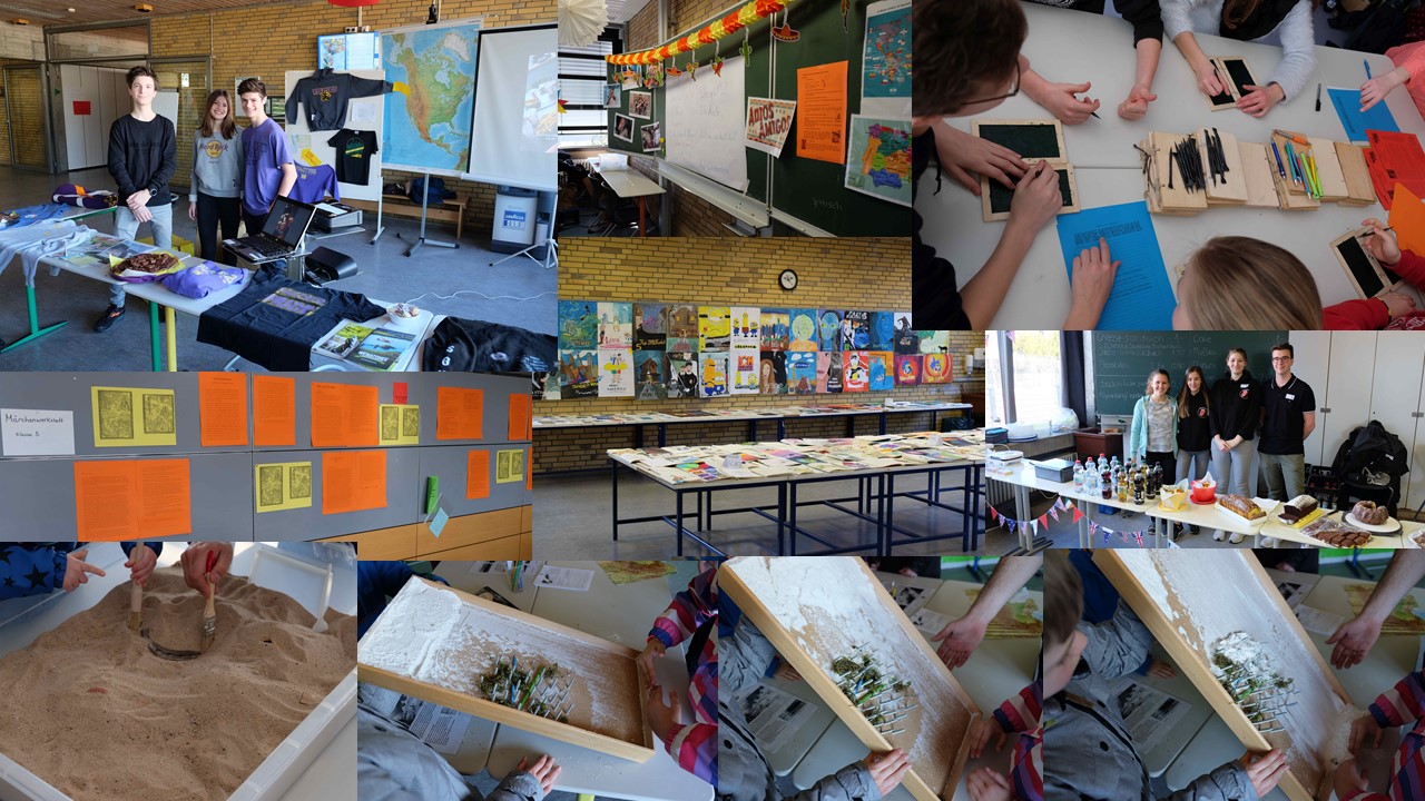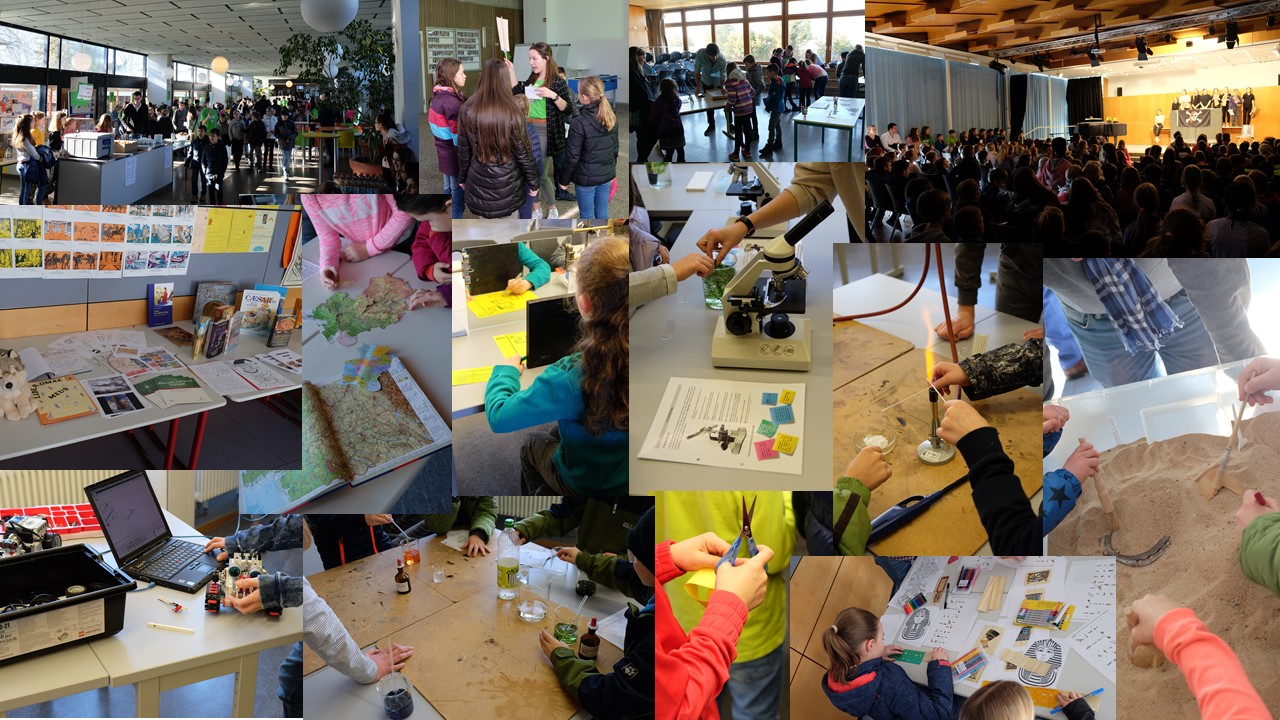 Bunte Luftballons begrüßten am vergangenen Samstag die Viertklässler sowie ihre Eltern zum Tag der offenen Tür am SGH. Eröffnet wurde dieser Vormittag mit einer Begrüßung durch unsere Schulleiterin Frau Bertsch-Nödinger sowie musikalischer und sportlicher Darbietungen einiger Schülerinnen und Schüler. In Kleingruppen unter Anleitung von Schülerinnen und Schülern der Klassenstufe 9/10 hatten die Viertklässler anschließend die Gelegenheit das Schulhaus zu erkunden und in die einzelnen Unterrichtsfächer hineinzuschnuppern. In der Mensa erhielten die Eltern einen Einblick in das vielfältige Angebot unserer Schule, um danach ebenfalls unter Anleitung von Kolleginnen und Kollegen das Schulhaus kennenzulernen. Verlockend waren neben den einzelnen Darbietungen der Fachschaften, die vom Experimentieren in Chemie bis zum Schreiben auf Wachstäfelchen wie im Alten Rom gereicht haben, auch die kulinarischen Angebote von Casa Alianza oder einem Ausflug nach „London“ bzw. „Paris“.