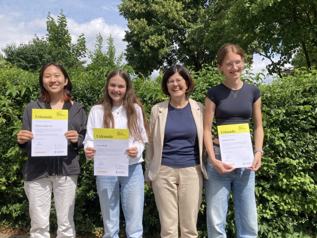 Im letzten Schuljahr haben drei unserer Schülerinnen, Adrienne Grone, Fiona Brodt und Singer Liu eine ganz besondere Erfahrung gemacht: Sie haben die Ausbildung zur Musikmentorin im Bereich Chor absolviert und mit Bravour bestanden. Dieses Programm wird vom Schwäbischen Chorverband gemeinsam mit dem Kultusministerium angeboten und richtet sich an musikbegeisterte Jugendliche, die Lust haben, über den normalen Unterricht/ AG-Bereich hinaus Verantwortung zu übernehmen.