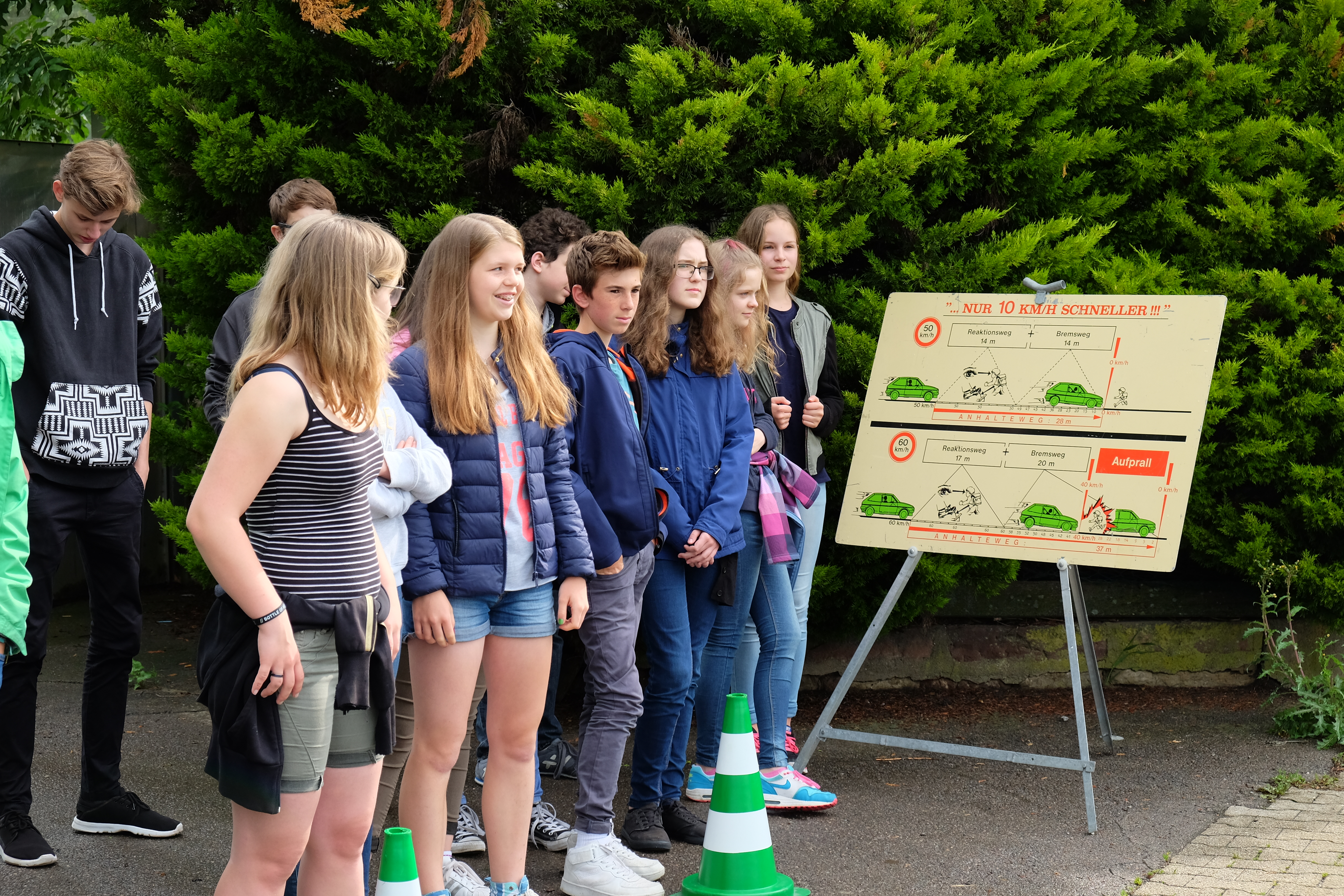 Am 08.06.2016 hat der diesjährige Verkehrssicherheitstag der Klasse 8 stattgefunden. Unterstützt wurde diese Aktion von der Verkehrspolizei, der Fahrschule Halanke/Franke, Radsport Holczer sowie durch einen Fragebogen des Fahrlehrerverbandes Baden-Württemberg.