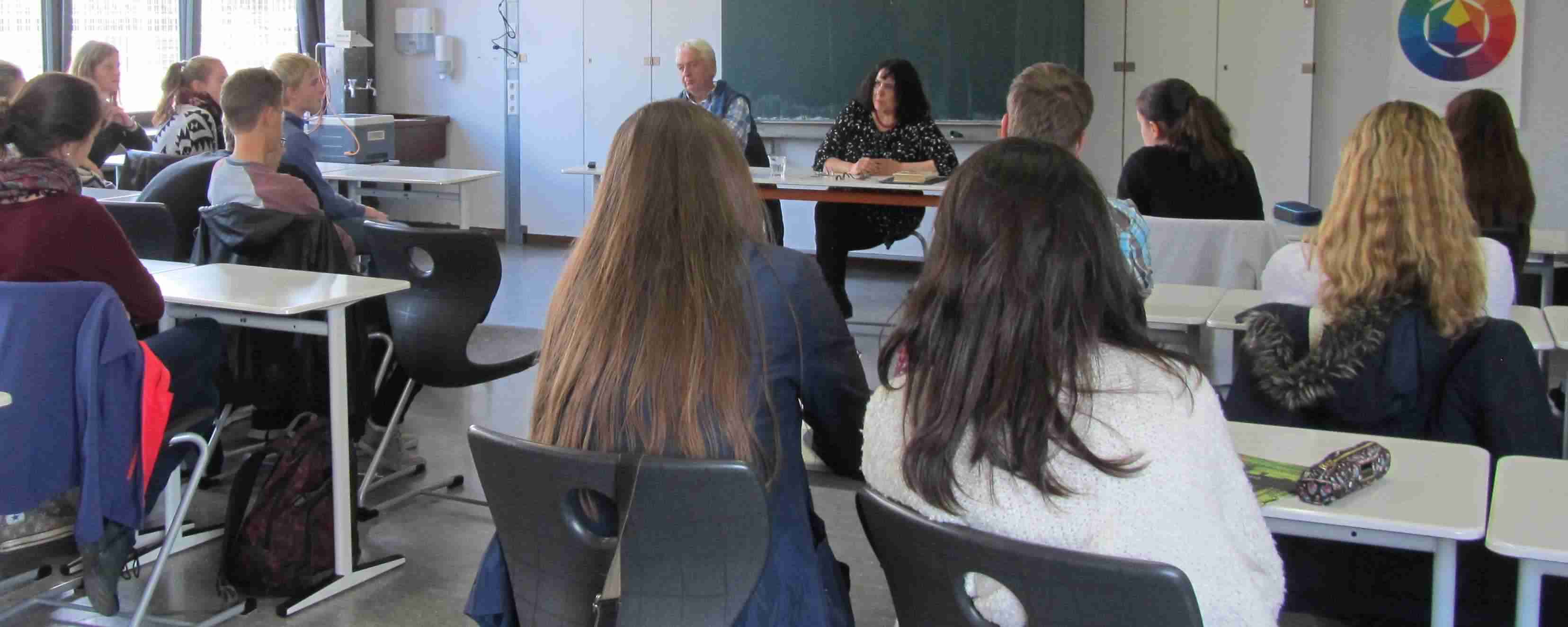 Bereits im Alter von drei Jahren wurde sie mit dem politischen System der DDR konfrontiert, als ihr Vater nach einer Auseinandersetzung mit einem Polizisten in Zivil, die dieser begonnen hatte, verurteilt wurde und Freya Klier mit ihrem Bruder in einem Kinderheim untergebracht wurden. Diese Erfahrung hat sie entscheiden geprägt und ihren weiteren Lebensweg nachhaltig bestimmt. Ihr Bruder hat die DDR nicht überlebt, da er „verlernt hatte, an den richtigen Stellen zu lügen, was in einer Diktatur überlebensnotwendig ist“, berichtete die Botschafterin für Demokratie und Toleranz. Ihr Bericht über ihre Schulzeit, die von einer „verkrampfte Fröhlichkeit“ bestimmt war, machte die anwesenden Schülerinnen und Schüler nachdenklich, denn frei denken und sprechen konnten die Jugendlichen in der DDR nicht. „Wir durften nicht raus in die freie Welt. Lebenslänglich.“, erzählte die Autorin, die bereits in jungen Jahren an eine Flucht auf einer Luftmatratze über die Ostsee gedacht, aber dann verworfen hatte. Ihren gedanklichen Ausweg hat sie dann in der Schauspielerei gefunden, da dort Stücke gespielt wurden, die unterschwellig Kritik an dem System der DDR geübt haben. Eine Chance die DDR zu verlassen, sah Freya Klier als eine Gruppe von schwedischen Jugendlichen Dresden besucht haben und sie Kontakte zu diesen knüpfte, die ihr dann auch eine Flucht mit Hilfe eines neuen und professionell erstellen Passes über den Freihafen in Rostock ermöglichen sollten. Was sie nicht wusste, war die Tatsache, dass dieser Ort durch Stasi-Mitarbeiter infiltriert war, ihr Fluchtversuch scheiterte und endete im Gefängnis. Ihre Aussage „Ich hatte aber noch viel vor in der DDR“ beschreibt den „positiven“ Aspekt ihrer Zeit in der DDR, denn sie engagierte sich nach ihrer Haft aktiv in der Bürgerrechtsbewegung. Trotz einer Inhaftierung in Hohenschönhausen und einigen Mordversuche, unter anderem durch Nervengift, konnte niemand Freya Klier von der Ausübung von Widerstand gegen die Diktatur der DDR abhalten bis sie 1987 aus der DDR ausgebürgert wurde. Mit der Aussage „In Diktaturen lernt man sich selbst und andere richtig kennen.“, die sich vor allem nach Einsicht in ihre Stasiakte im Jahr 1992 bewahrheiten sollte, aus der hervorging, dass 82 Stasi-Spitzel auf sie angesetzt waren sowie 23 Wanzen in ihrer Wohnung verbaut gewesen sind, endete ihr Vortrag. Abschließend wollten die Schülerinnen und Schüler von Freya Klier wissen, wie sie die aktuelle Situation in Deutschland in Bezug auf das Thema „Fremdenfeindlichkeit“ beurteilt bzw. wie man dagegen vorgehen könne.