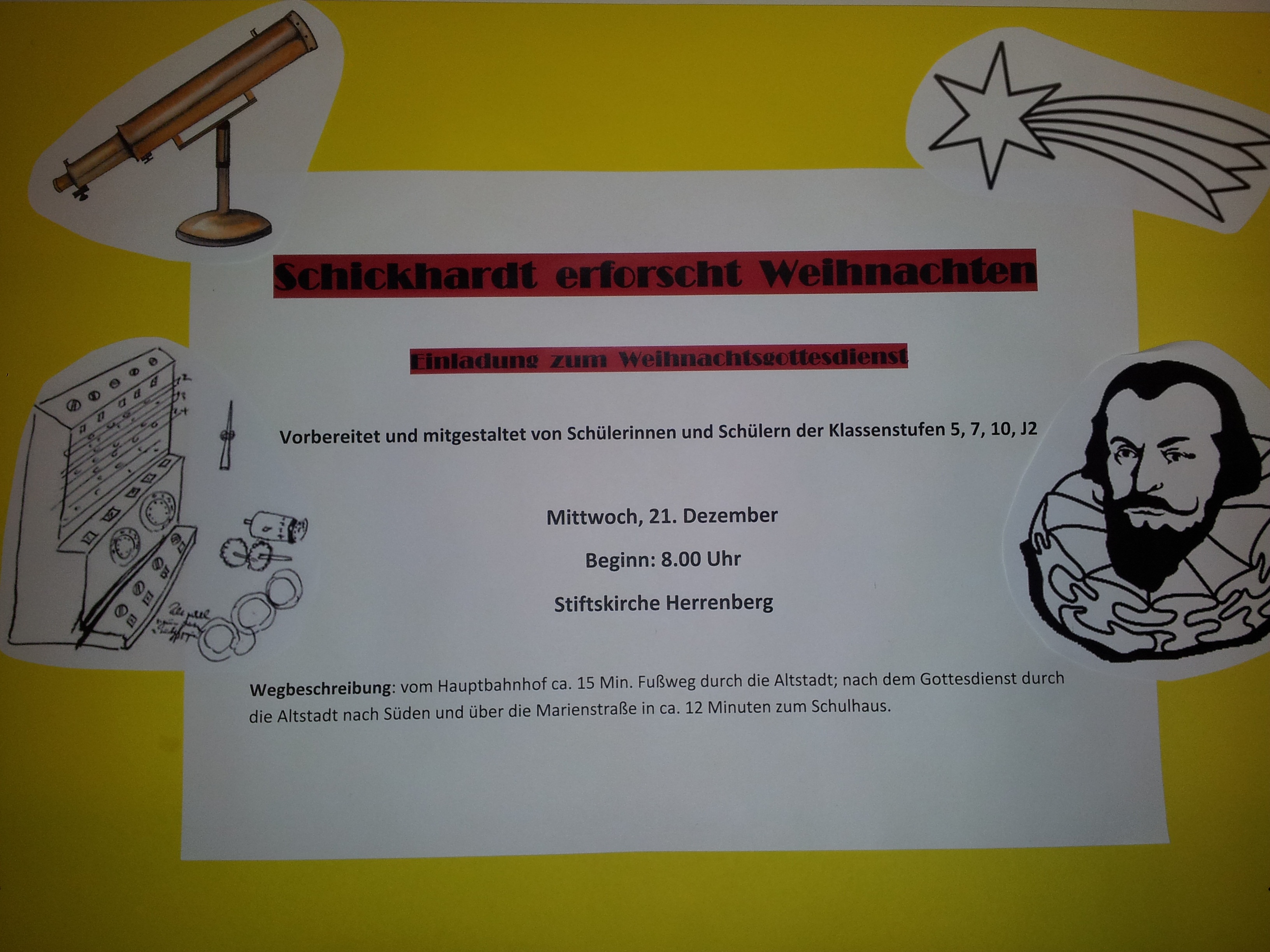 Herzliche Einladung zum diesjährigen Weihnachtsgottesdienst mit dem Thema „Schickhardt erforscht Weihnachten“.