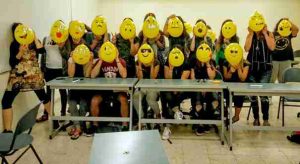 Als besonders schön empfand ich es, dass ich ein und dieselbe Kunstklasse mehrmals hintereinander unterrichten durfte. Die SchülerInnen haben u.a. gelbe Luftballons mit unterschiedlichen Emoticon-Gesichtszügen bemalt und diese im ganzen Schulhaus aufgehängt. Das Besondere am Leo Baeck ist, dass unterschiedliche Schularten unter einem Dach vereint sind, weswegen die bemalten Luftballons auch sehr schnell von GrundschülerInnen abgehängt und mit nach Hause genommen wurden.