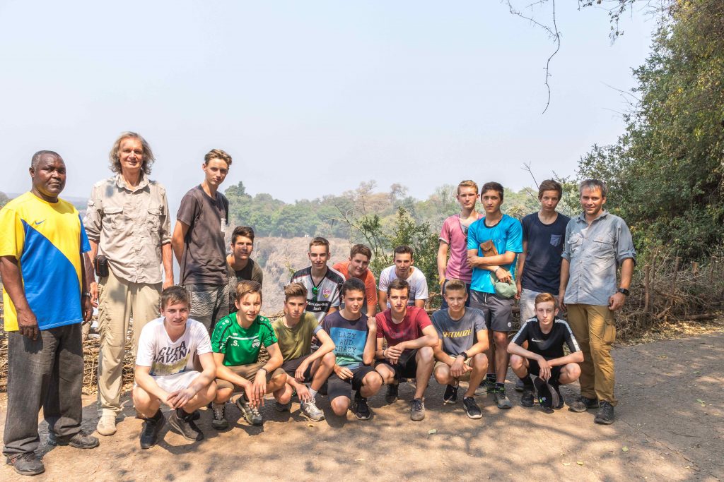 Auch dieses Jahr gab es bereits zu Beginn des Schuljahres (13.-24.09.2017) den Austausch mit der Rainbow High School in Gaborone (Botswana). Begleitet wurden die Schüler von Herrn Schafhauser und Herrn Zolg. Neben der Teilnahme an einem Fußballturnier an der Rainbow High School sowie zwei weiteren Fußballspielen unter anderem gegen die Westwood High School, reiste die deutsche Schülergruppe gemeinsam mit ihren Lehrern zum Chobe-Nationalpark und zu den Victoria-Fällen, wo dieses Bild entstanden ist.