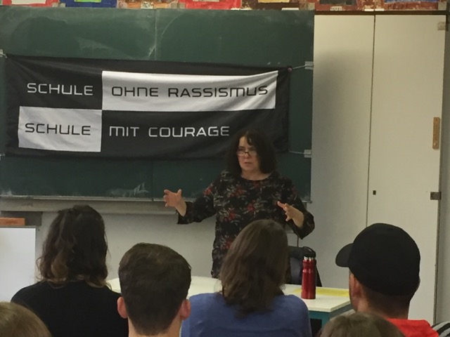 Als Schulpatin des AK Courage und durch die Vermittlung der Konrad Adenauer-Stiftung Stuttgart berichtete Freya Klier u.a. von ihrer Kindheit und Jugend in der DDR bis zu ihrer Ausbürgerung 1988. Überall fänden junge Leute die Möglichkeit, sich einzusetzen und für Gerechtigkeit zu kämpfen.