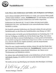 Auch in diesem Jahr gibt es wieder die Möglichkeit, in der schuleigenen Nachhilfekartei nach Unterstützung durch Schüler der Oberstufe zu suchen.