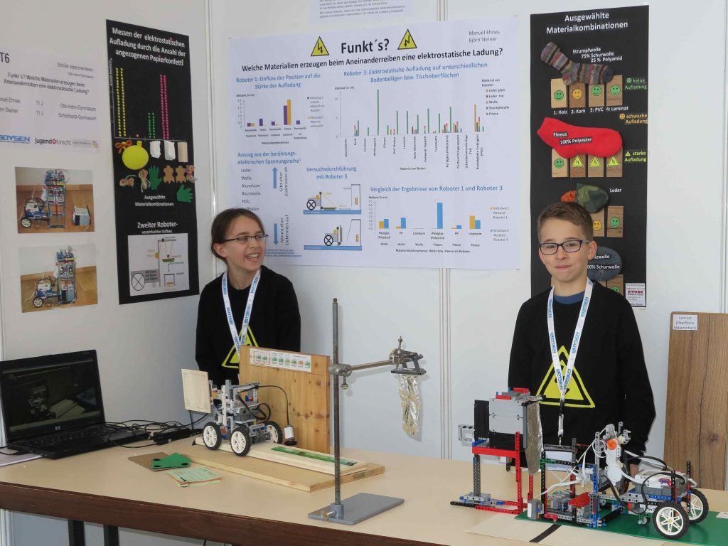 Björn Steiner (Klasse 6) und Manuel Ehnes (OHG Nagold) haben mit ihrem Projekt „Welche Materialien erzeugen beim Aneinanderreiben eine elektrostatische Ladung?“ erfolgreich am Wettbewerb „Jugend forscht“ in Altensteig teilgenommen. Mit dem Regionalsieg in der Kategorie „Technik“ haben sich die beiden für den Landeswettbewerb im April qualifiziert. Dafür wünschen wir ihnen viel Erfolg!