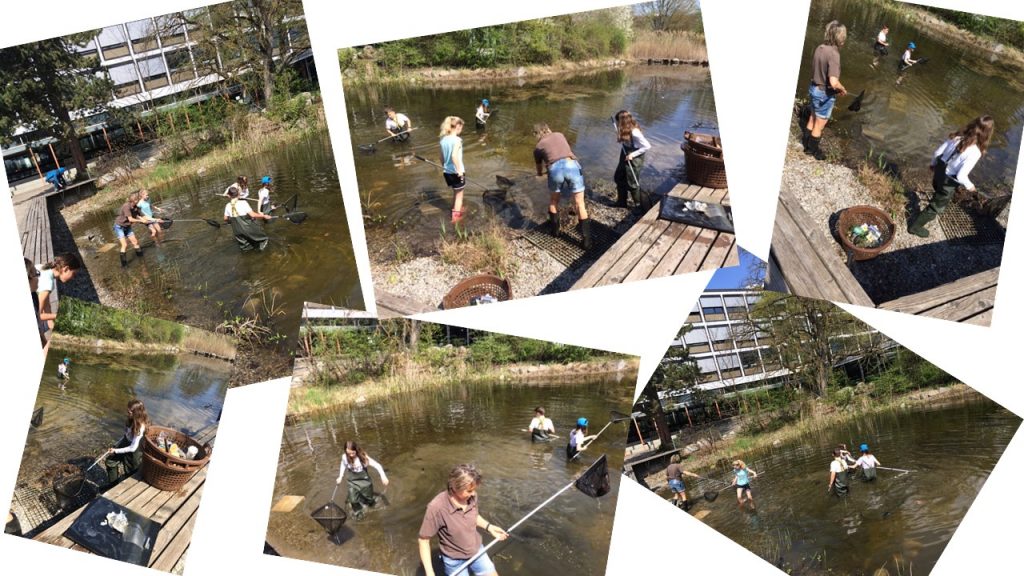 In der letzten Woche fand eine weitere Schulsee-Putzete der Ökologie-AG statt . Ausgerüstet mit Keschern und Anglerhosen wurden ziemlich ekelerregende Dinge aus dem Schulsee gefischt.