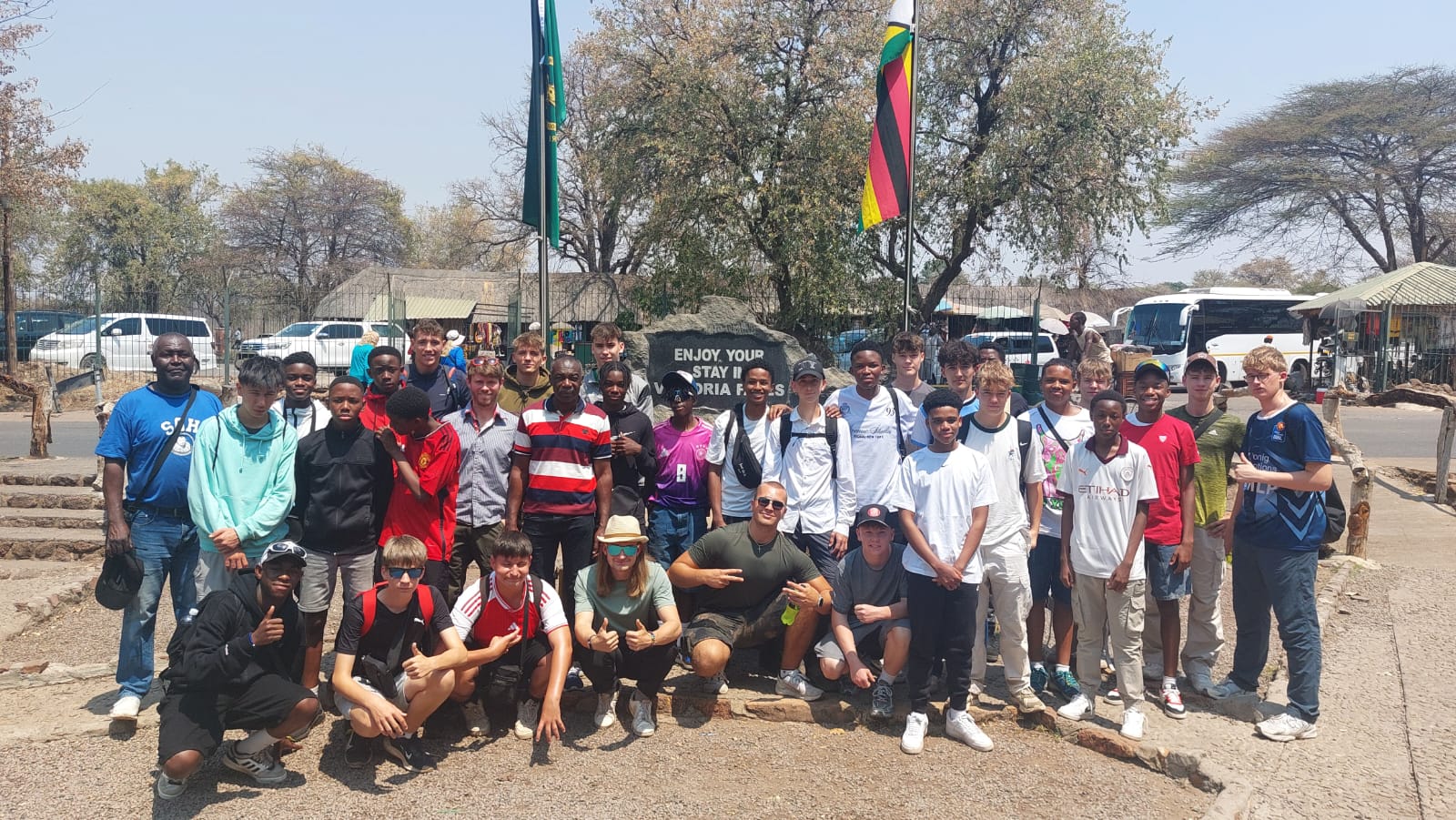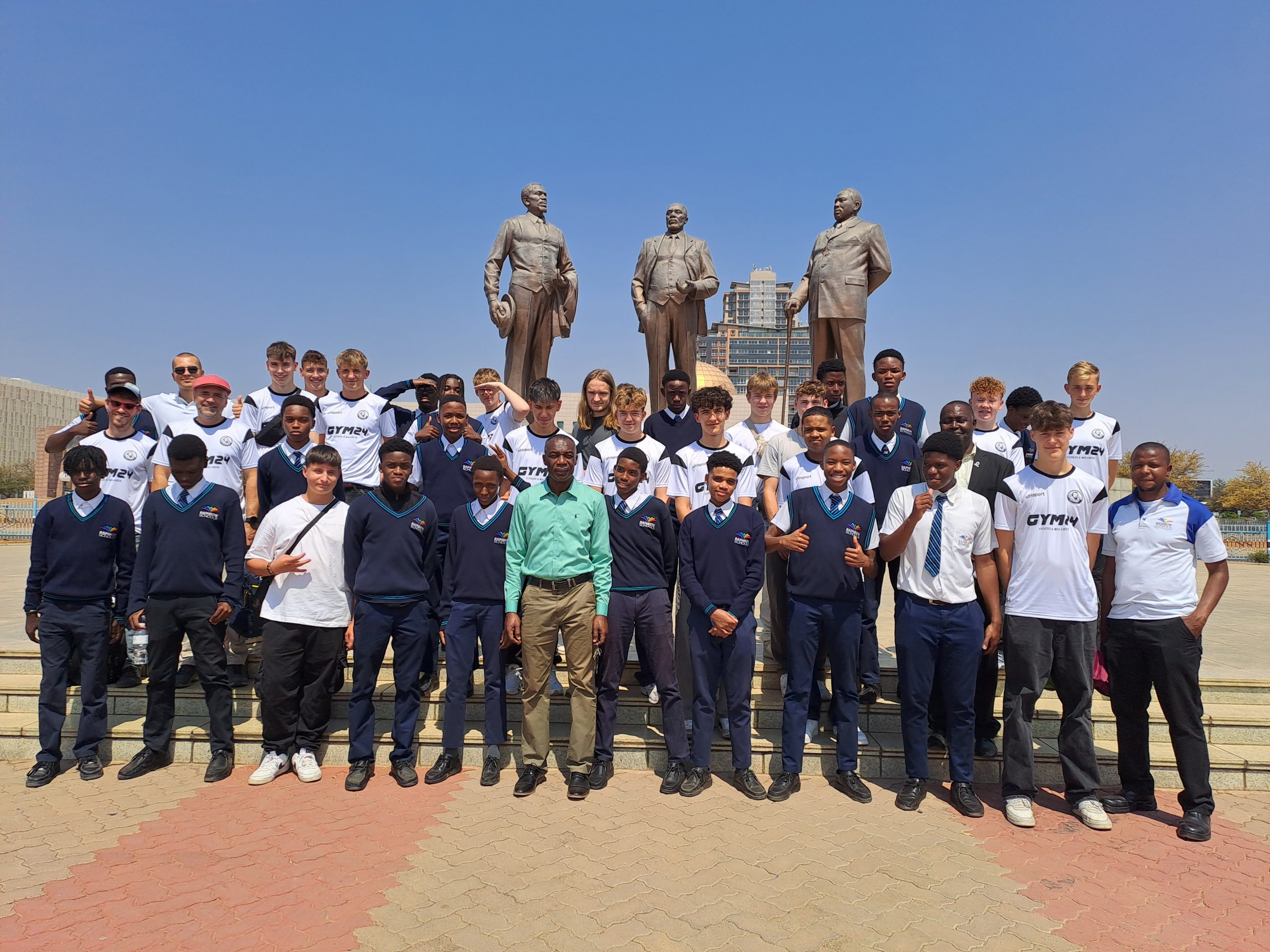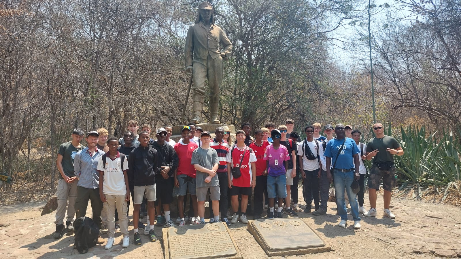 Unser dritter Tag und somit erster Tag in Botswana startete mit einem Treffen an der Rainbow High School. Nach einer kurzen Schulführung wurden wir von der ganzen Schule freundlich begrüßt, danach ging es für uns auf eine Stadttour. Diese begann mit einer Fahrt zum Parlament von Botswana wo wir viele interessante Fakten erfuhren. Nach einer kurzen Stärkung in der Stadt und einem Museumsbesuch über die Geschichte von Botswana schauten wir uns die drei Chiefs, ehemalige Präsidenten und Nationalhelden von Botswana an. In der Mittagshitze fuhren wir dann mit dem Bus in den kühlen Essenssaal der Schule und aßen traditionell. Um 14 Uhr startete dann das erste Spiel unserer Reise gegen unsere Austauschpartner, welches wir knapp mit 4:3 gewannen. Am Abend ging jeder nach Hause, um sich auf die Fahrt nach Zimbabwe vorzubereiten oder sich im Restaurant Mokolodi Bushkitchen zu treffen. (Levin Yesil)