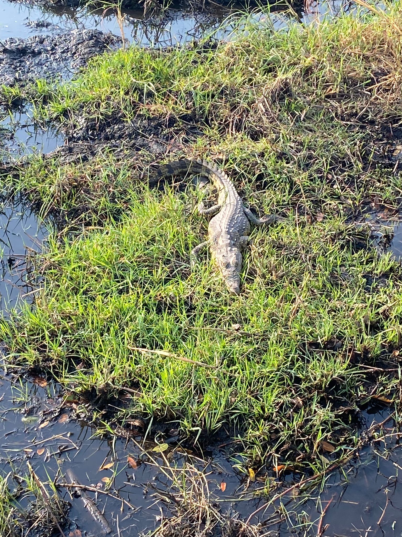 Bei unserer Rückkehr zu den Lodges gab es erstmal eine Überraschungsparty für unser Geburtstagskind Dominik mit Mittagessen und Torte. Danach hatten wir etwas Zeit uns für die um 15 Uhr anstehende Bootsfahrt auf dem Chobe River auszuruhen. Auf dem Fluss gab es wieder ausreichend Entertainment mit Krokodilen, Nilpferden, Wildscheinen, Elefanten und Büffeln.