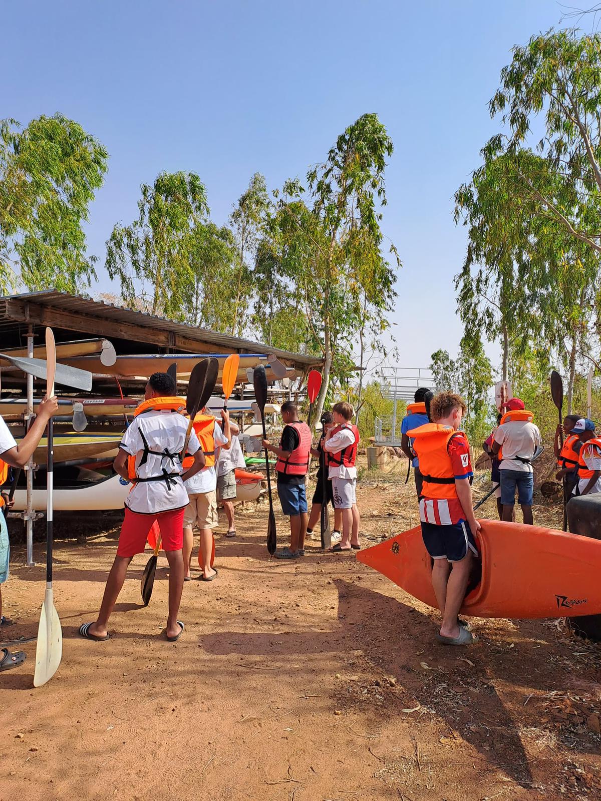 Am 10ten Tag unserer Botswanareise ging es für die meisten von uns wie an den vorherigen Tagen erstmal in die Schule, um ungefähr 9:30 Uhr gingen ein paar Schüler noch in eine Töpferei, wo sie sich den Töpfereiprozess anschauten und dann am Ende noch Souvenirs mitnehmen konnten bevor sie wieder zurück zur Schule fuhren. Als der Schultag beendet war ging es so gegen 14 Uhr zum Gaborone Yacht Club, wo wir erst Schwimmwesten dann Paddel und danach unser Kanu bekamen.