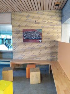 Nachdem Anfang Januar auf Initiative einiger J2-Schülerinnen ein neues Gesamtbild der am SGH-Schulleben-Beteiligten gemacht wurde, hat dieses neue Schulbild mittlerweile einen Platz im Schulhaus gefunden.