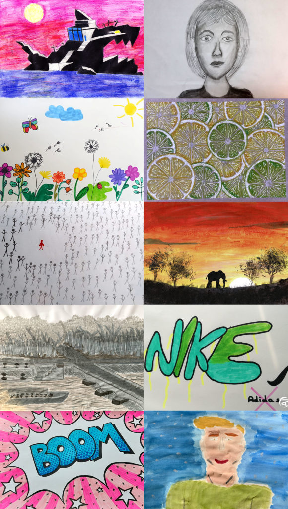 Skizzenheftarbeiten der Klasse 7b, die in den vergangenen Wochen entstanden sind: