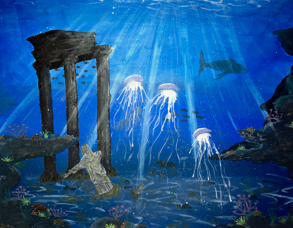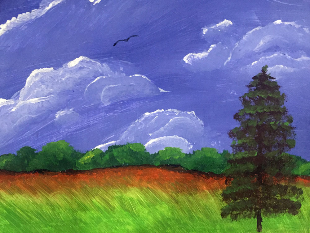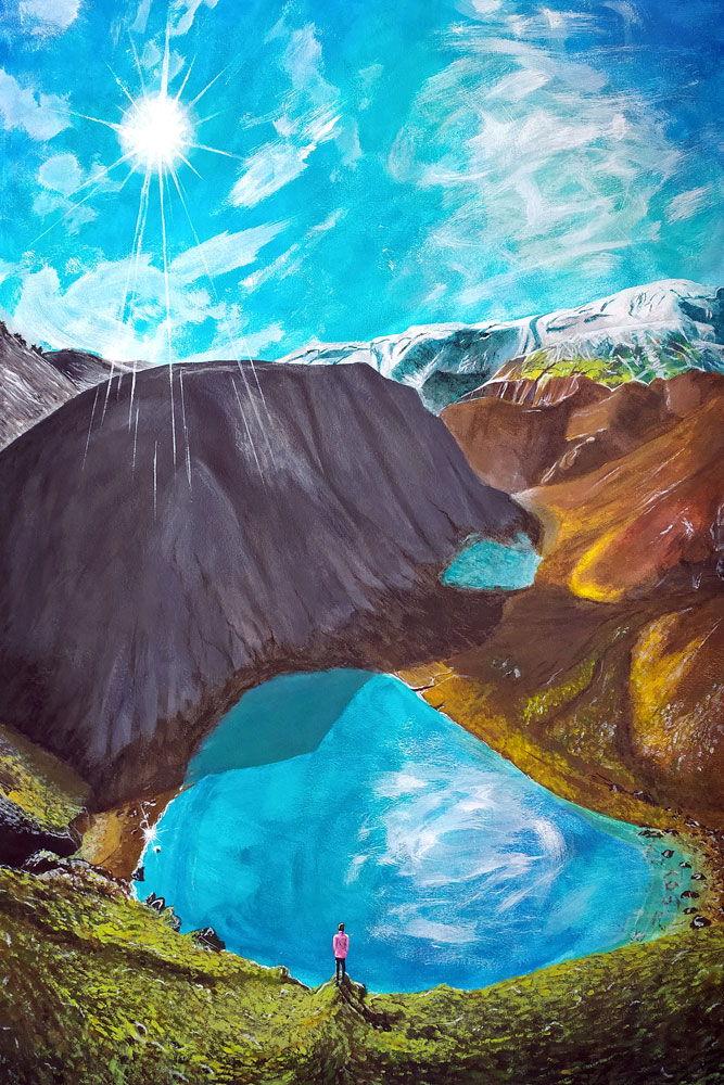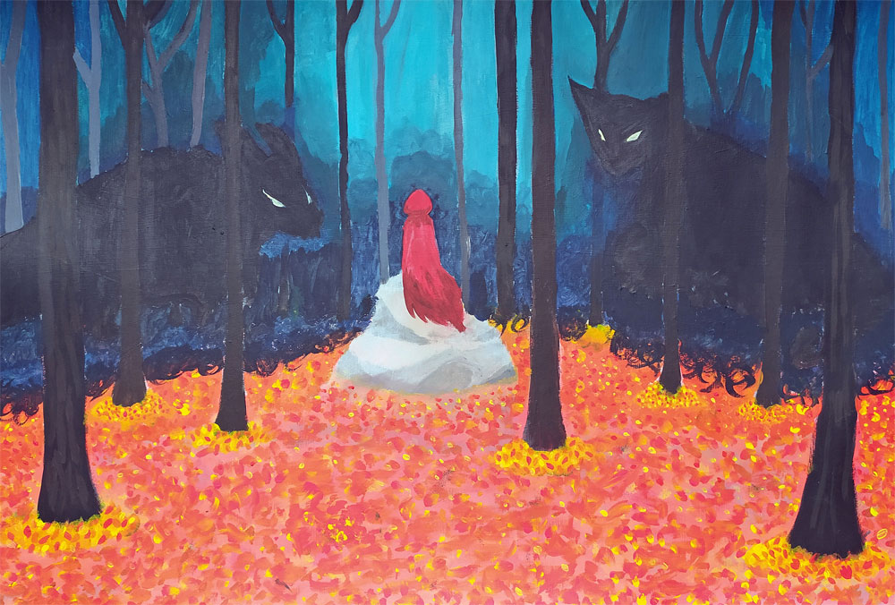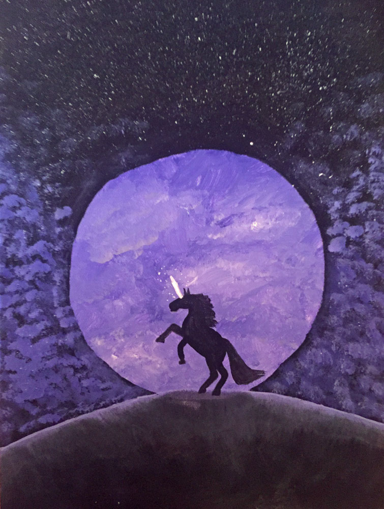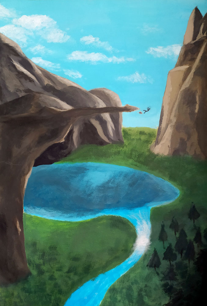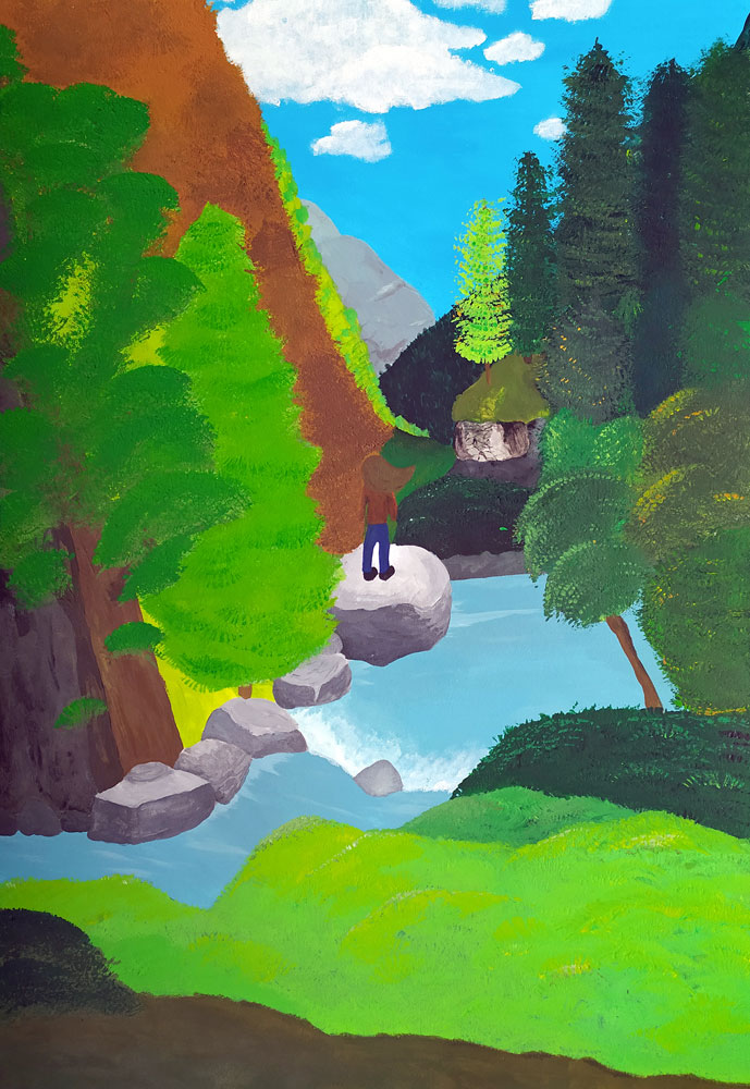Inspiriert von den Landschaftsmalereien Caspar David Friedrichs sollten hier Gemälde entstehen, die Mensch und Landschaft in Beziehung setzen. Dabei orientierten wir uns beispielsweise am „Wanderer über dem Nebelmeer“ mit seiner Rückenfigur und erhabenen Landschaft. Alle Bilder wurden unter Berücksichtigung kompositorischer und technischer Mittel mit Acryl auf grundiertem Karton gemalt. Die Motive entspringen zum Teil der Märchen- und Mythenwelt.