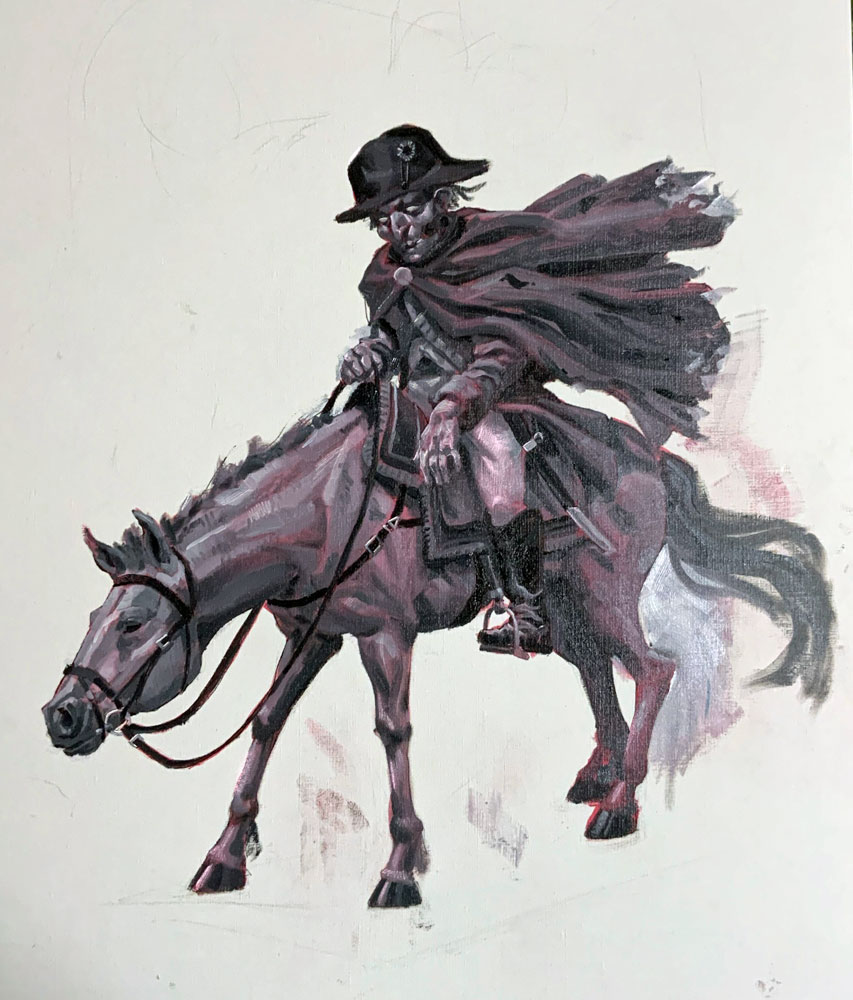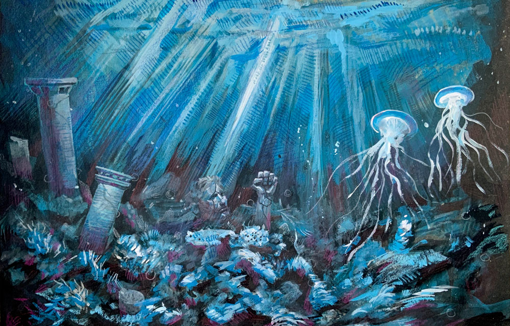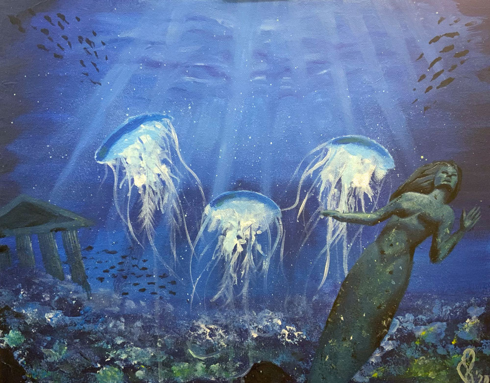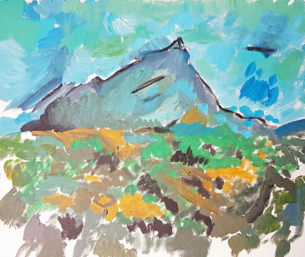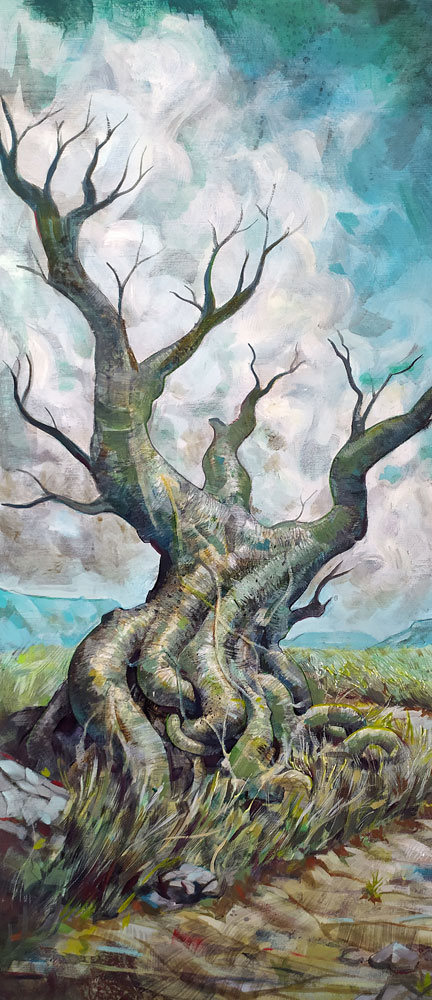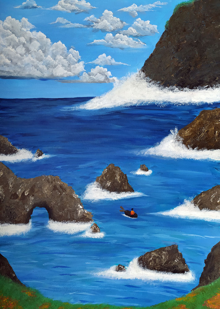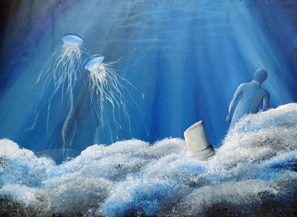Inspiriert von den Landschaftsmalereien Caspar David Friedrichs sollten hier Gemälde entstehen, die Mensch und Landschaft in Beziehung setzen. Dabei orientierten wir uns beispielsweise am „Wanderer über dem Nebelmeer“ mit seiner Rückenfigur und erhabenen Landschaft. Alle Bilder wurden unter Berücksichtigung kompositorischer und technischer Mittel mit Acryl auf grundiertem Karton gemalt. Die Motive entspringen zum Teil der Märchen- und Mythenwelt.
