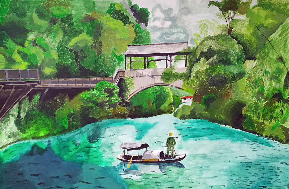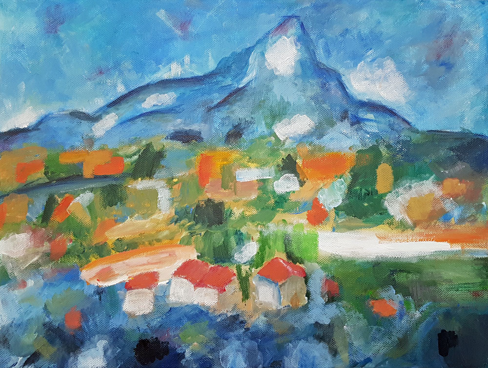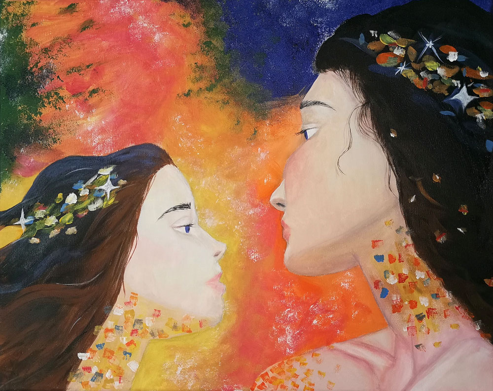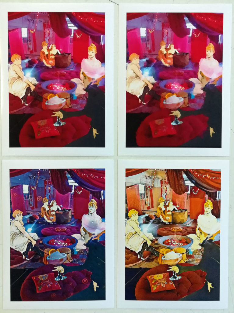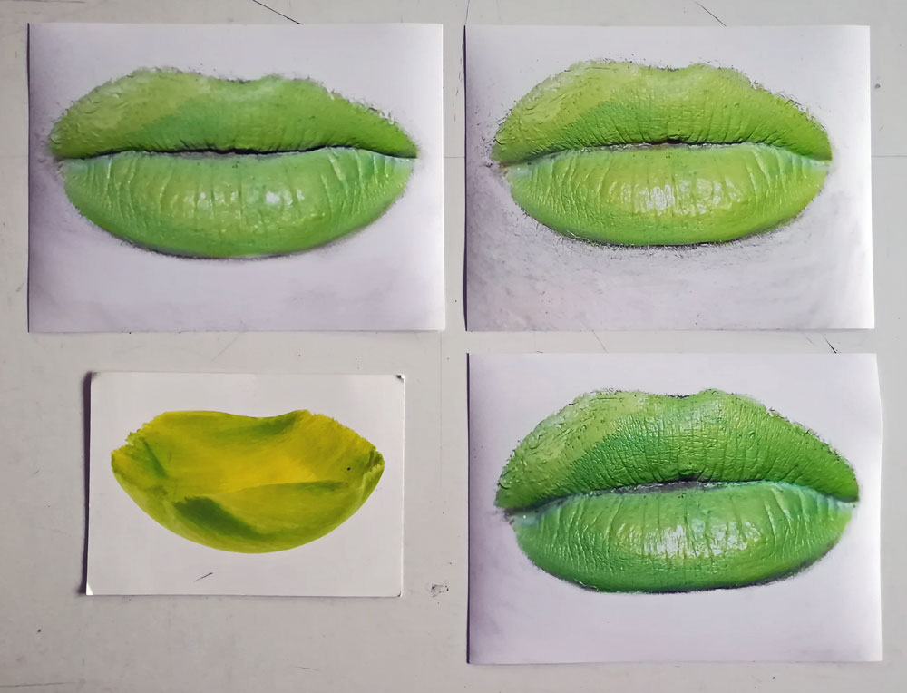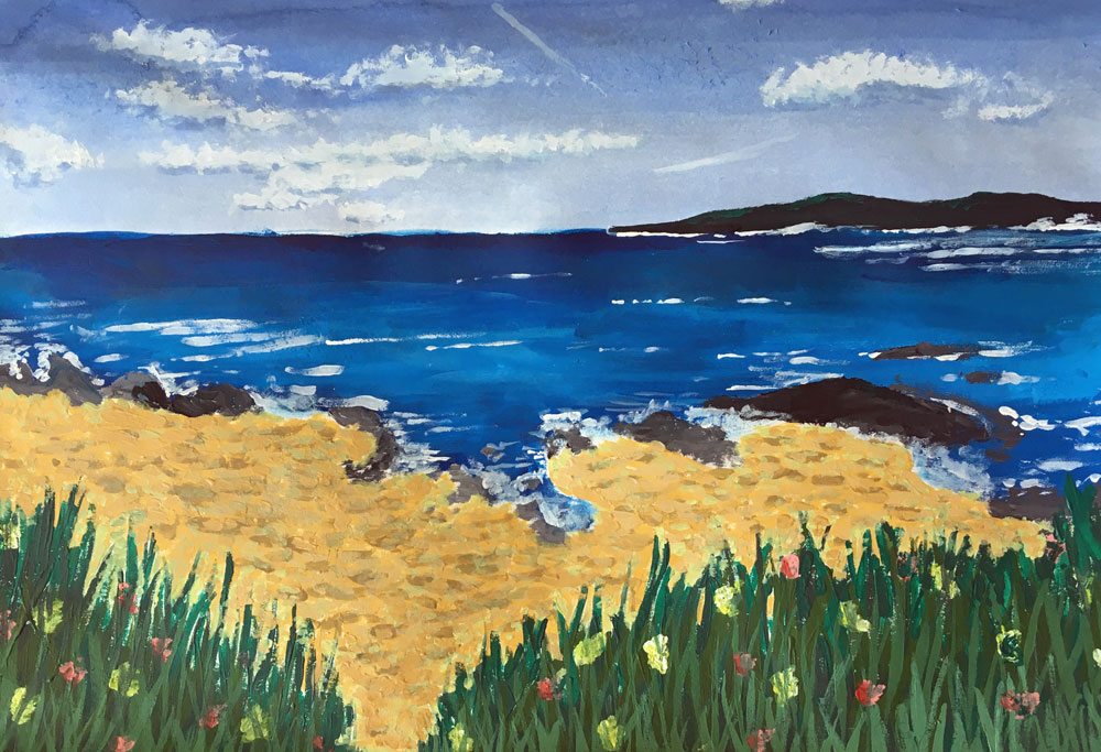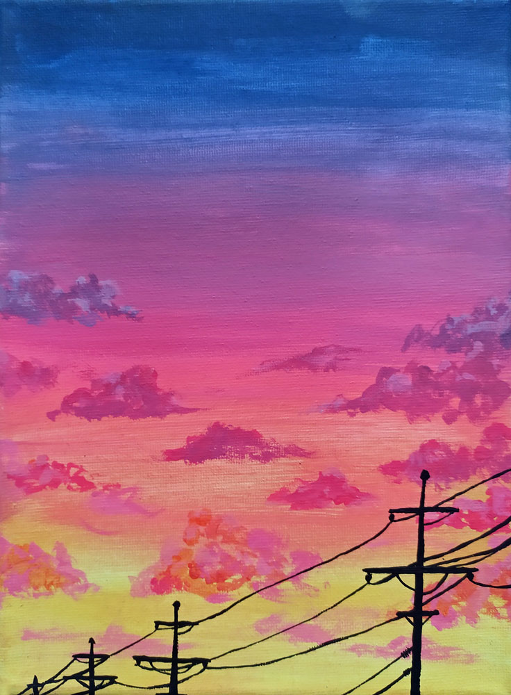 „Unsere Lieblingsaufgabenstellung war das „Postkartenprojekt“, bei dem wir uns drei Postkarten aussuchen durften, die jeweils berühmte Kunstwerke zeigten. Dazu sollten wir je 3 Neuinterpretationen gestalten. Inspiriert wurden wir dafür auf unserer Exkursion in die Kunsthalle Tübingen, wo in der Ausstellung „COMEBACK – Kunsthistorische Renaissance“ eine Vielzahl kunsthistorisch bekannter Werke neu interpretiert zu sehen waren. Diese waren dann eine Inspiration für unsere eigenen Arbeiten. Das Endergebnis musste jedoch keine offensichtliche Referenz zu dem Bild auf der Postkarte zeigen, sondern man sollte durch die Postkarte lediglich einen Gedanken- und Ideenanstoß bekommen. Auch die Wahl der Technik war uns freigestellt. Besonders an dieser Aufgabenstellung hat uns gefallen, dass man in seinem Arbeiten sehr frei war und dass man gleichzeitig auch berühmte Kunstwerke und Künstler*innen kennengelernt hat, da auch jeder von uns eine kurze Präsentation über die Künstler*in der jeweiligen Postkarte halten musste.“
