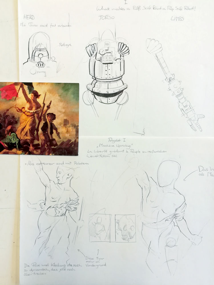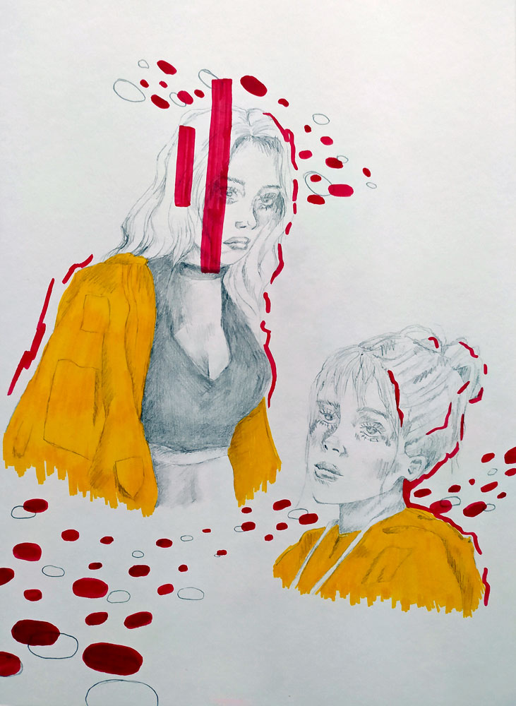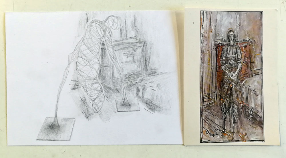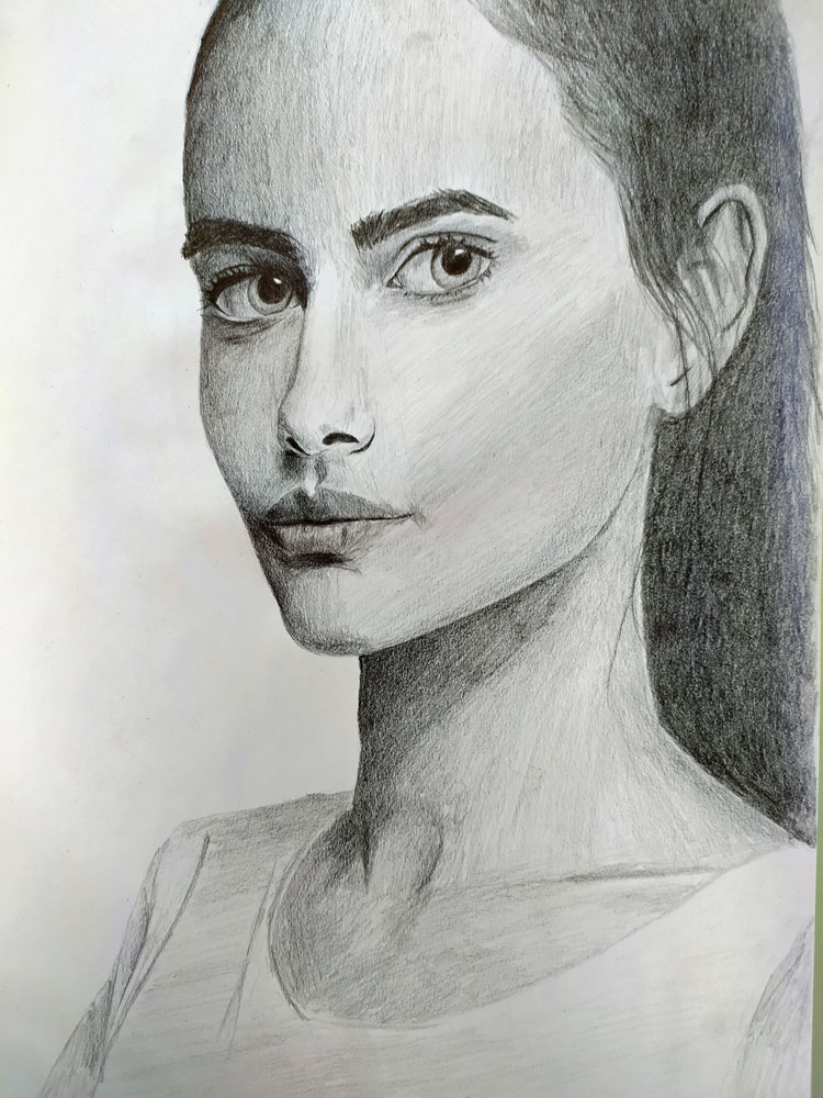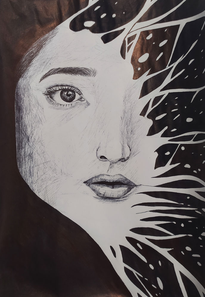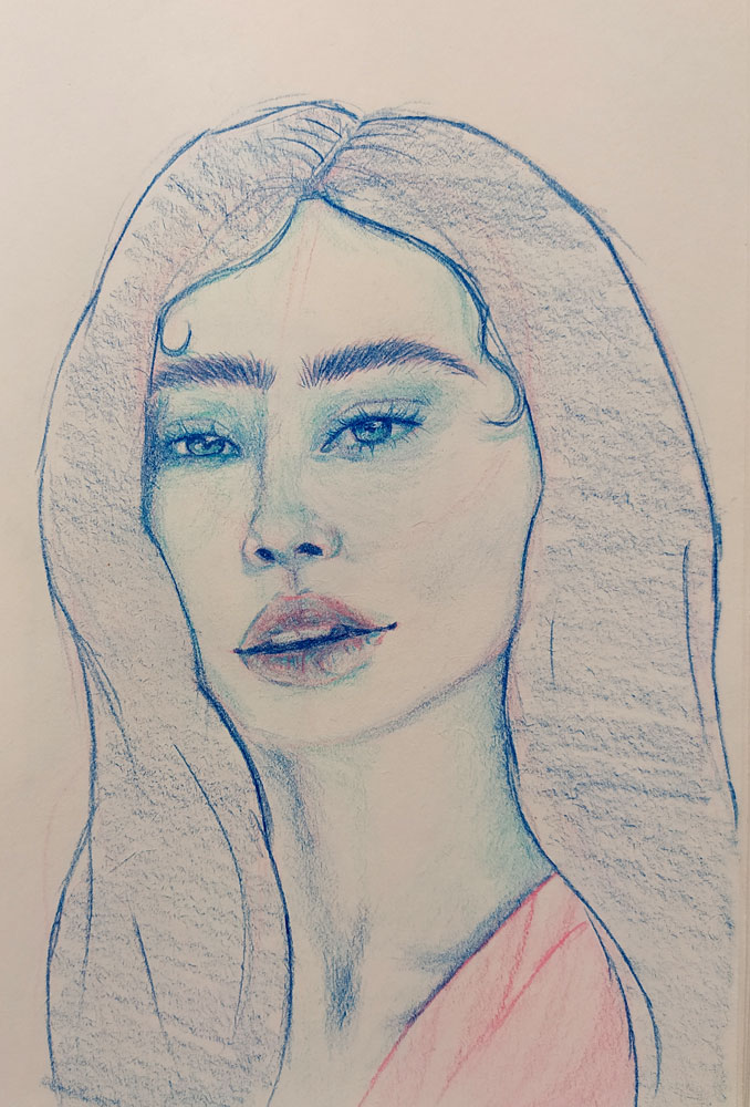Am meisten haben mir – wie wahrscheinlich den meisten – die Skizzenheftarbeiten gefallen, da auch dort oft Freiheit in Technik und Motiv gegeben war, jede*r konnte also das machen, was ihr oder ihm am meisten Spaß machte und was sie/er am besten konnte. Wir haben aber auch im Skizzenheft verschiedenste Aufgabenstellungen bekommen, die für uns als Übung für verschiedene Techniken und somit auch für das fachpraktische Abitur fungierten.