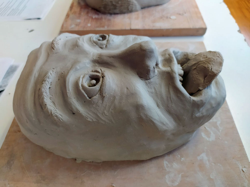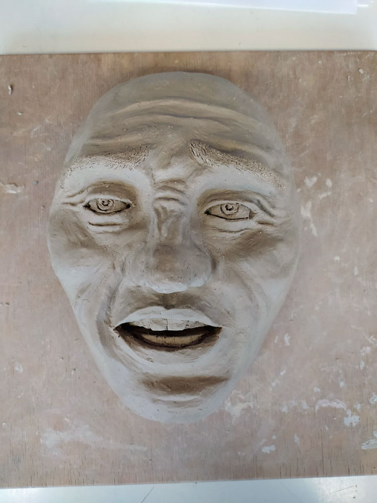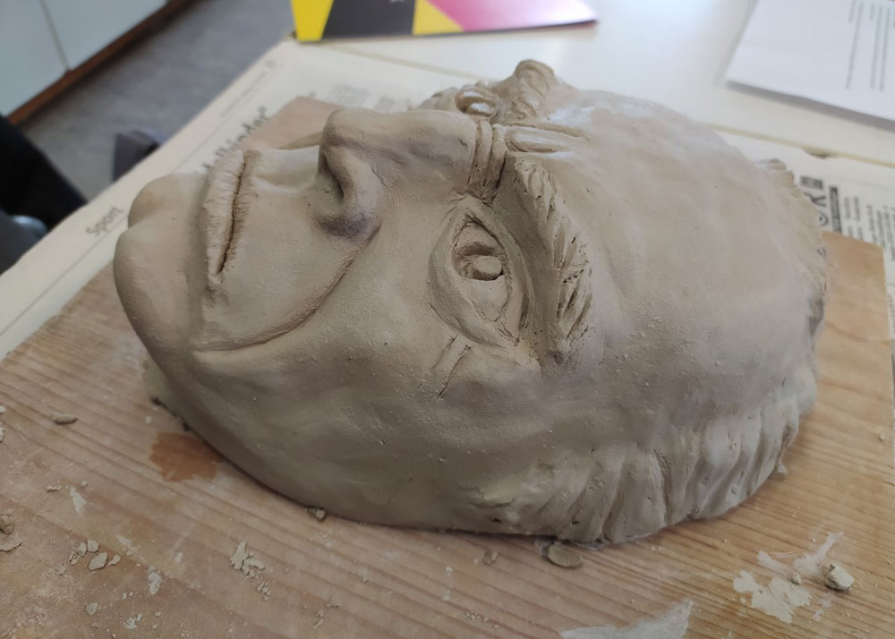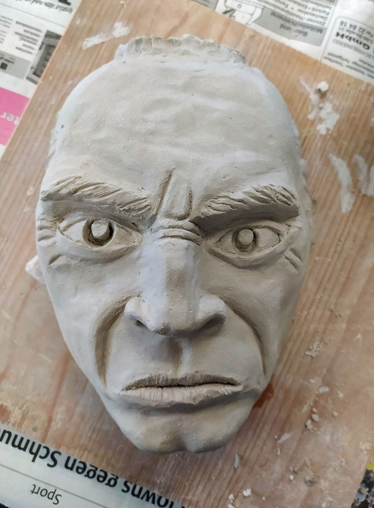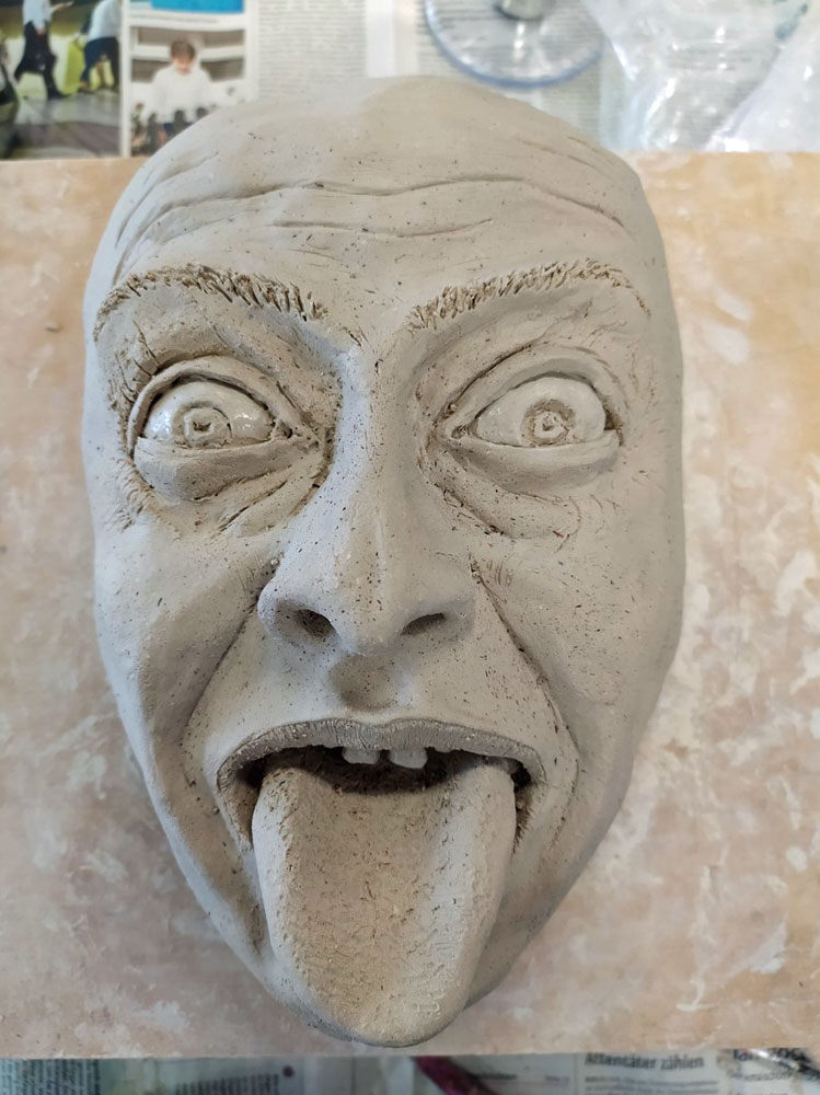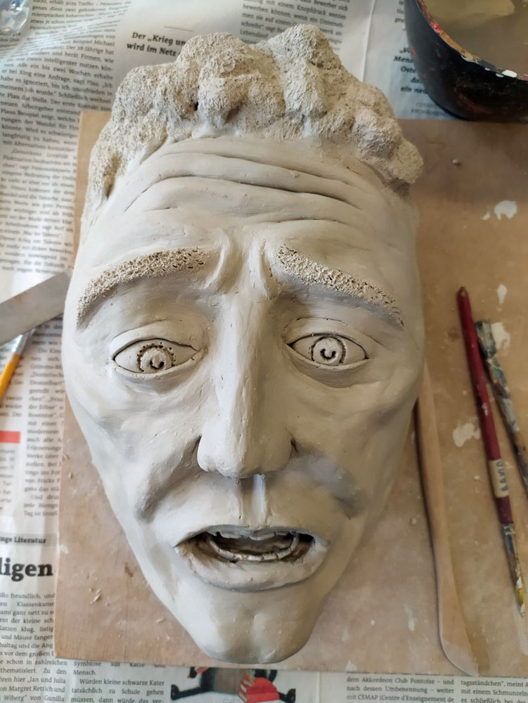 Passend zum Schwerpunktthema “Verkörperungen” bekamen wir den Auftrag, Gesichtsgrimassen aus Ton herzustellen. Dazu trafen wir uns kurz nach der zweiten Coronawelle in der Schule. Zu diesem Zeitpunkt waren wir unter den wenigen Schüler*innen, die zur Abivorbereitung für 5 Stunden an die kommen Schule durften. Da dies erst das zweite Mal war, bei dem wir Ton als Material benutzten, gab es einige, die kein gutes Ergebnis befürchteten. Doch wir waren positiv vom Ergebnis überrascht. Sehen sie selbst/Seht selbst: