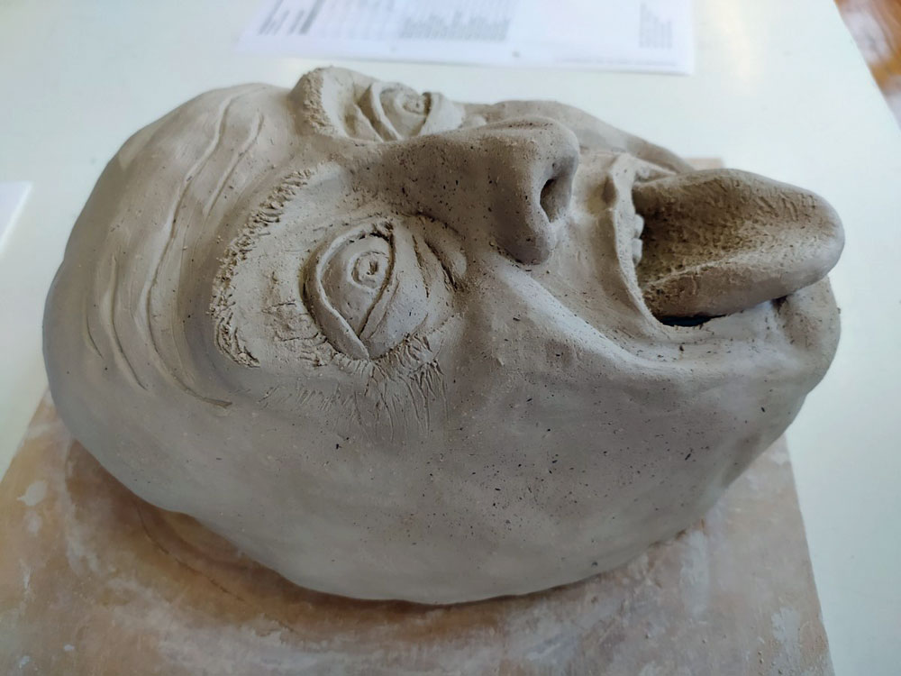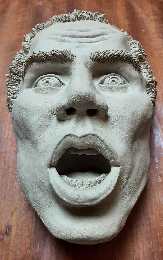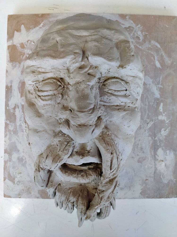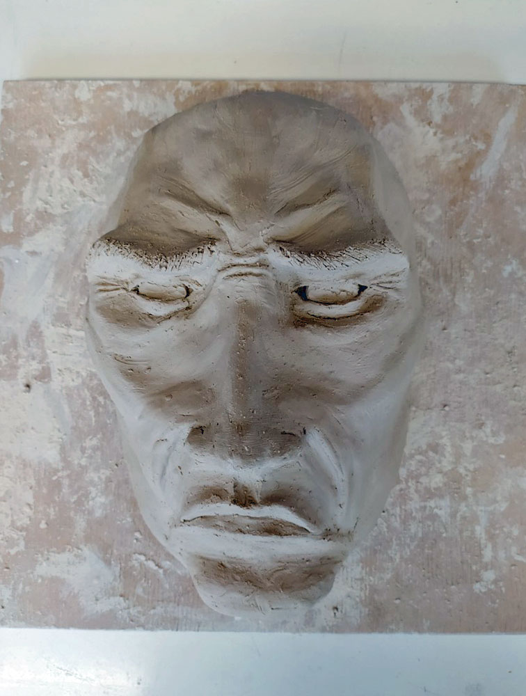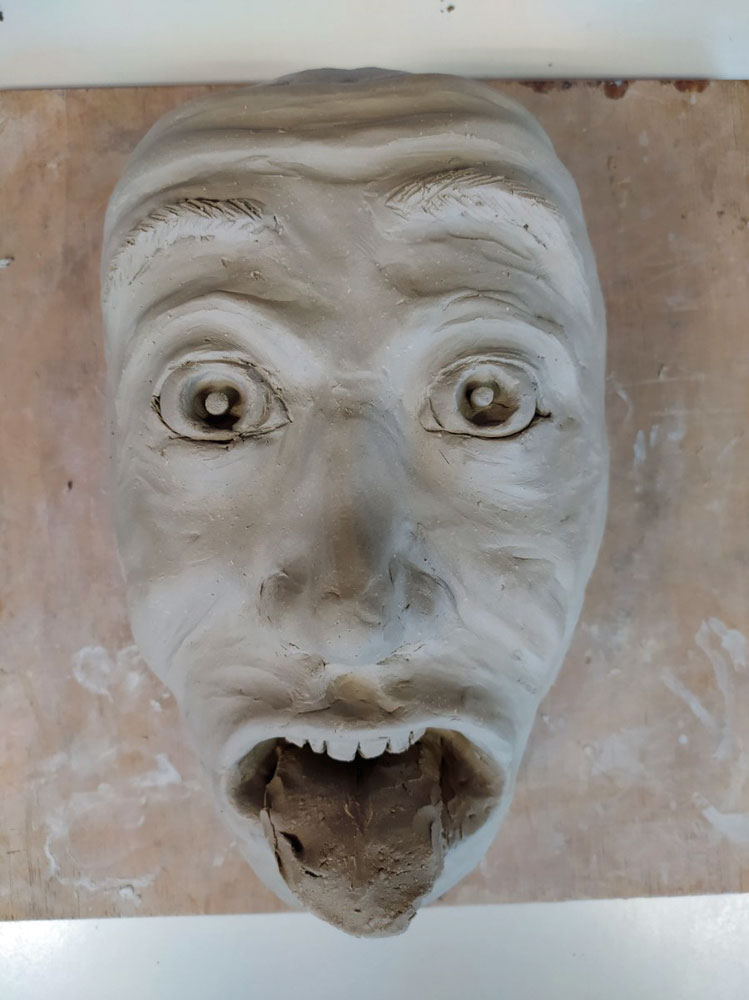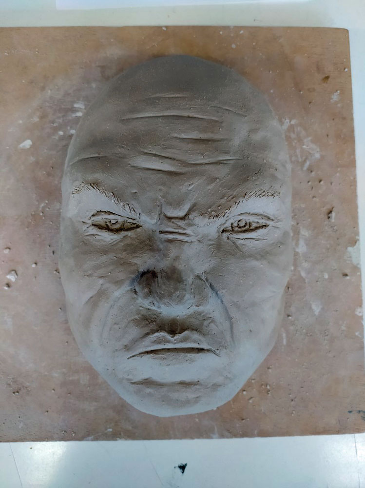 Passend zum Schwerpunktthema “Verkörperungen” bekamen wir den Auftrag, Gesichtsgrimassen aus Ton herzustellen. Dazu trafen wir uns kurz nach der zweiten Coronawelle in der Schule. Zu diesem Zeitpunkt waren wir unter den wenigen Schüler*innen, die zur Abivorbereitung für 5 Stunden an die kommen Schule durften. Da dies erst das zweite Mal war, bei dem wir Ton als Material benutzten, gab es einige, die kein gutes Ergebnis befürchteten. Doch wir waren positiv vom Ergebnis überrascht. Sehen sie selbst/Seht selbst: