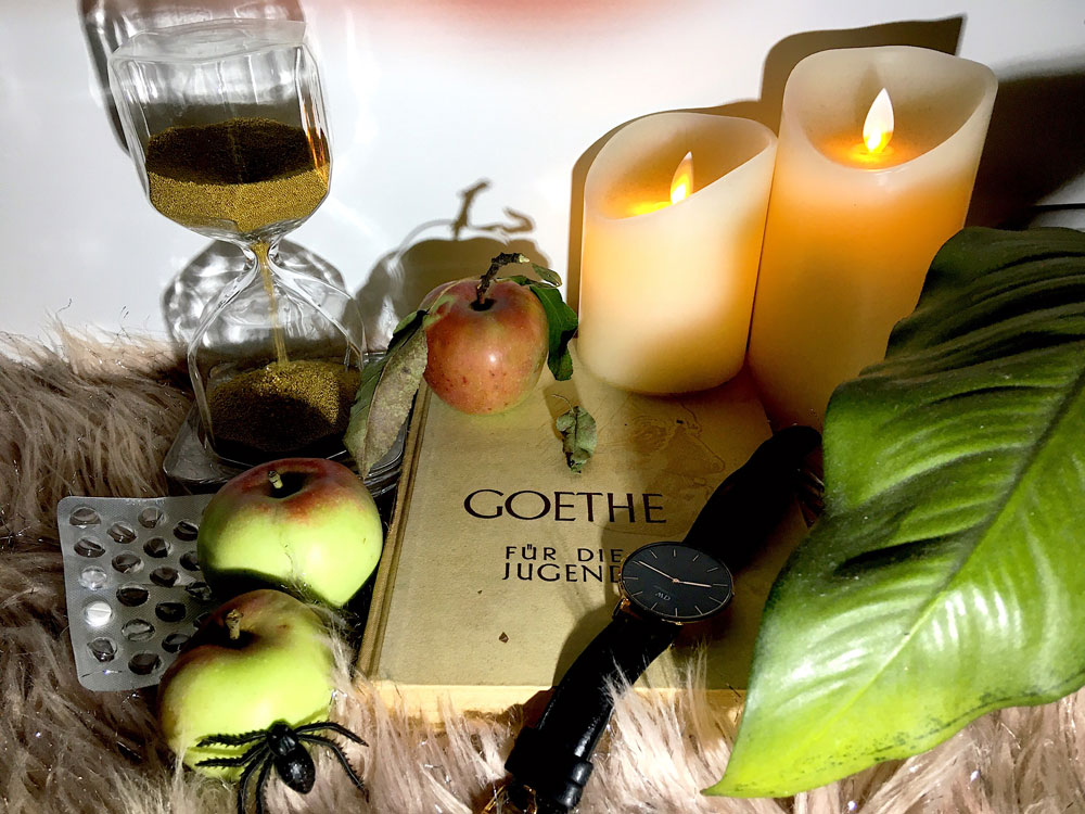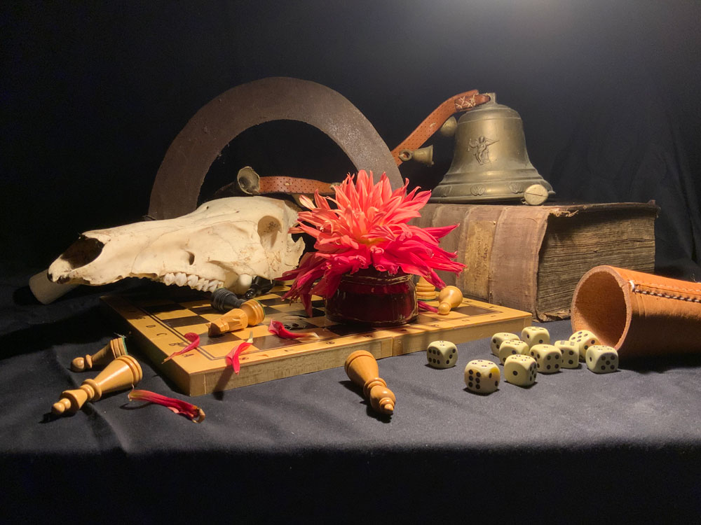 ‚Stillleben‘ bezeichnet in der Kunst die Darstellung toter bzw. regloser Gegenstände, die nach inhaltlichen und ästhetischen Aspekten ausgewählt und arrangiert werden. Inspiriert von der Stilllebenmalerei des Niederländischen Barocks sollten wir je eine Fotografie zu folgenden Themen herstellen: Alltag – Prunk – Vanitas. Diese Aufgabe hört sich leichter an als sie ist, denn es benötigt viel Geschick, die Gegenstände zu einem ästhetischen Gesamtbild zusammenzustellen.