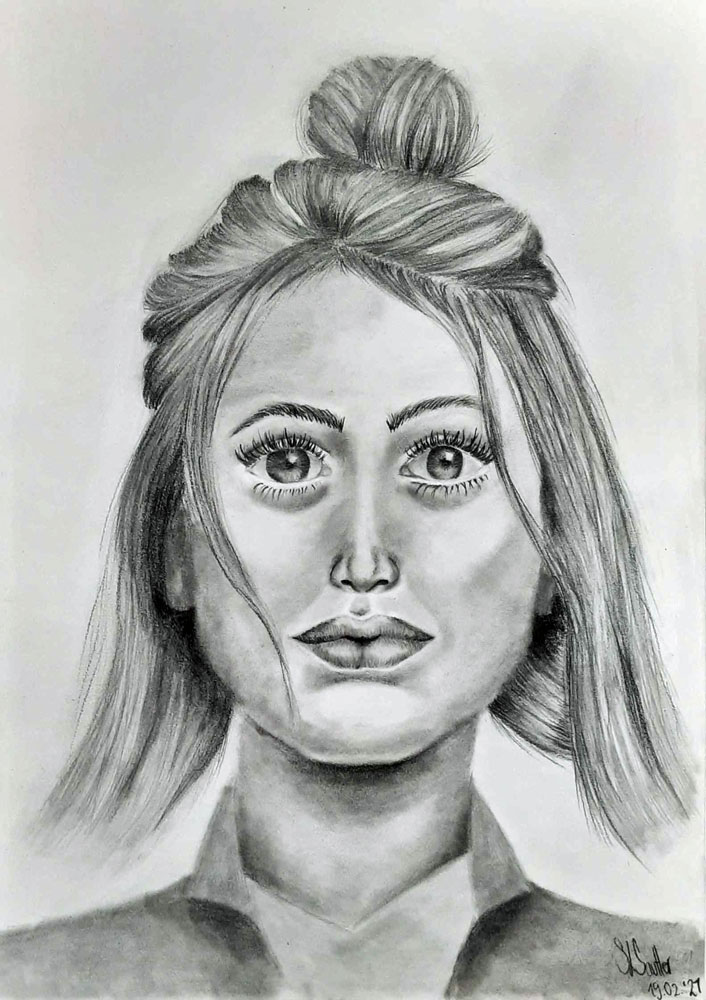 „In den zwei Jahren Leistungskurs BK wurden wir viel gefordert, aber dadurch auch gefördert. Manchmal schienen die Aufgaben und Arbeiten sehr viel und nicht selten baten wir um eine Verlegung des Abgabedatums nach hinten. Im Nachhinein denke ich jedoch gerne zurück an all die Projekte, die wir machen durften und an denen wir manchmal mehr, manchmal weniger Spaß hatten. Auch meine Familie war immer begeistert von Frau Zimmermanns vielseitigen Ideen.“ (Sarah Franke)