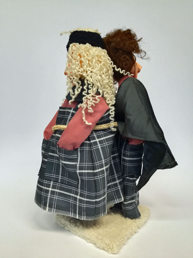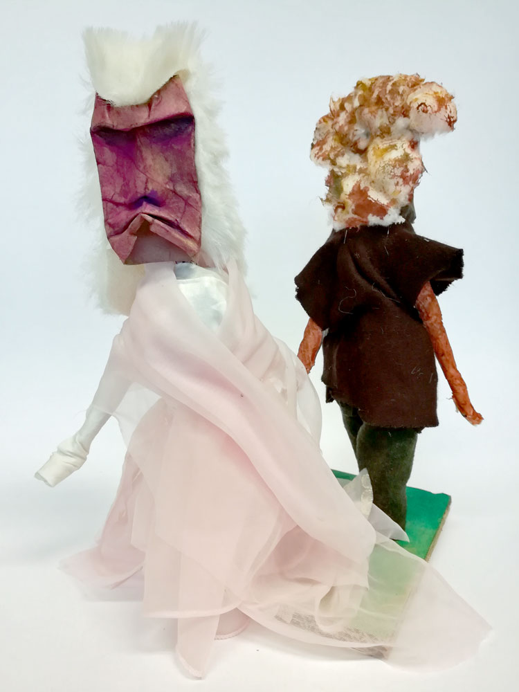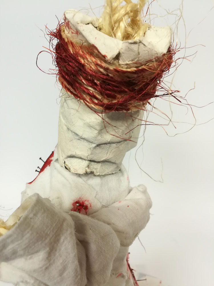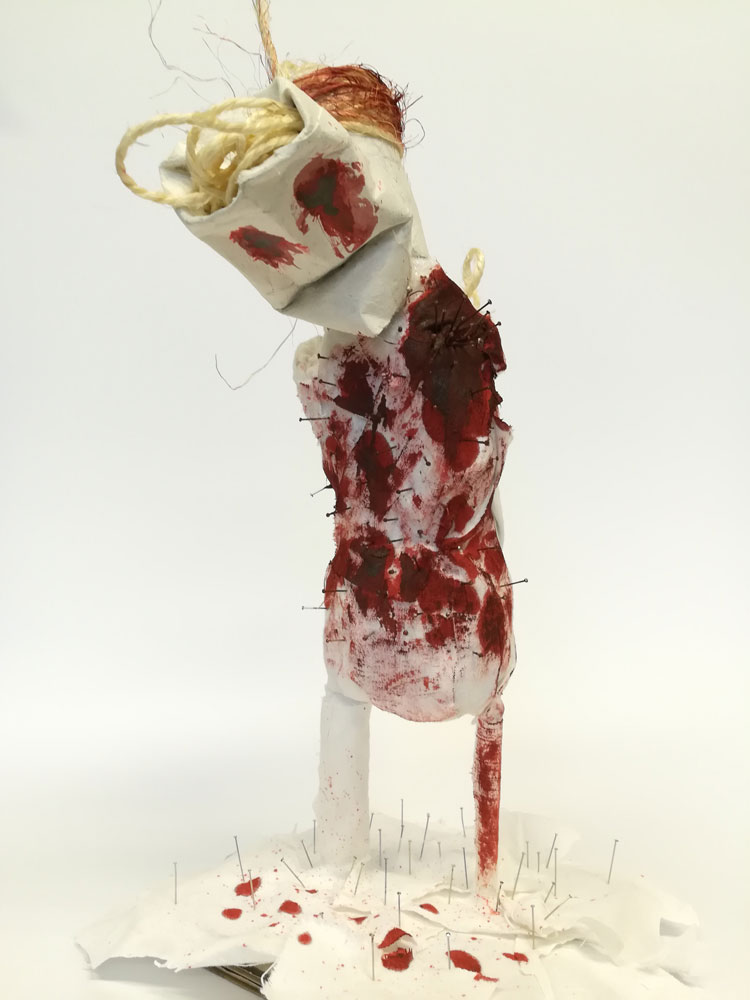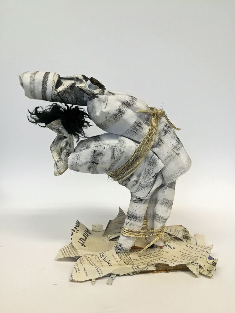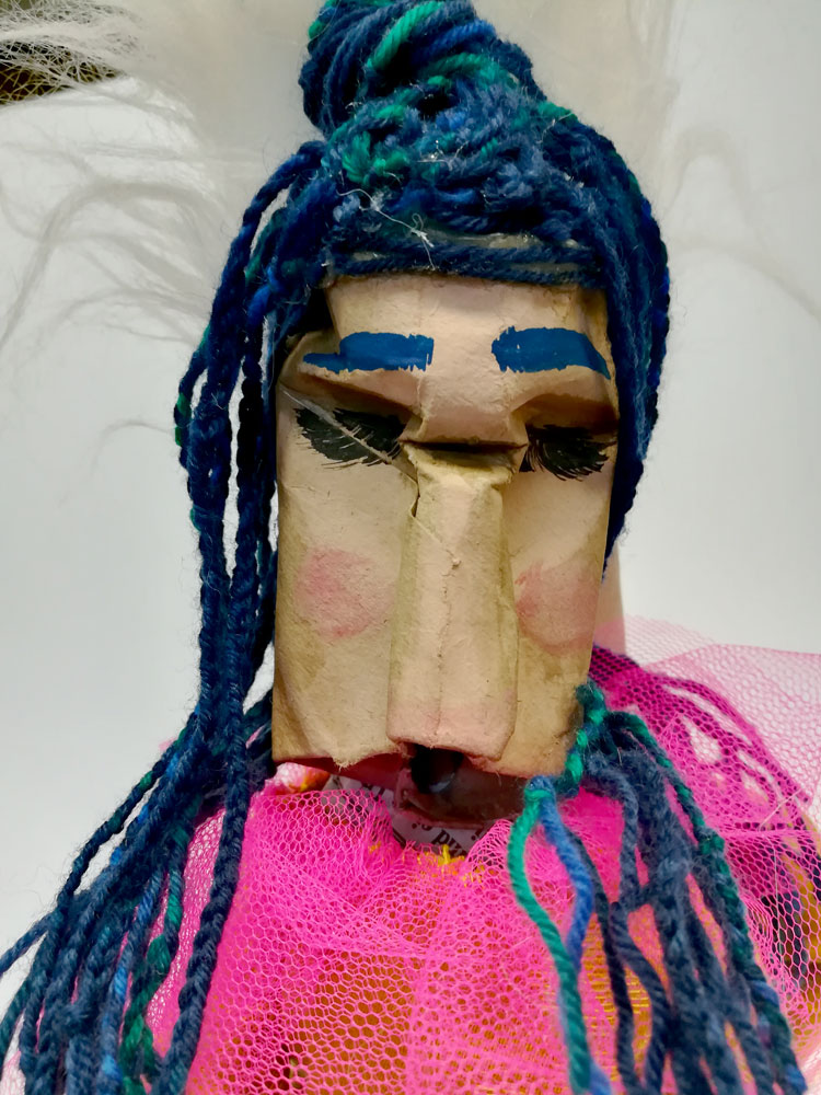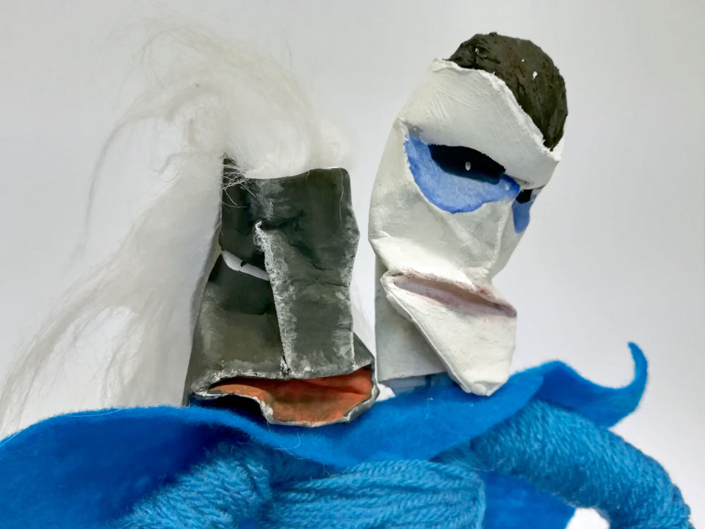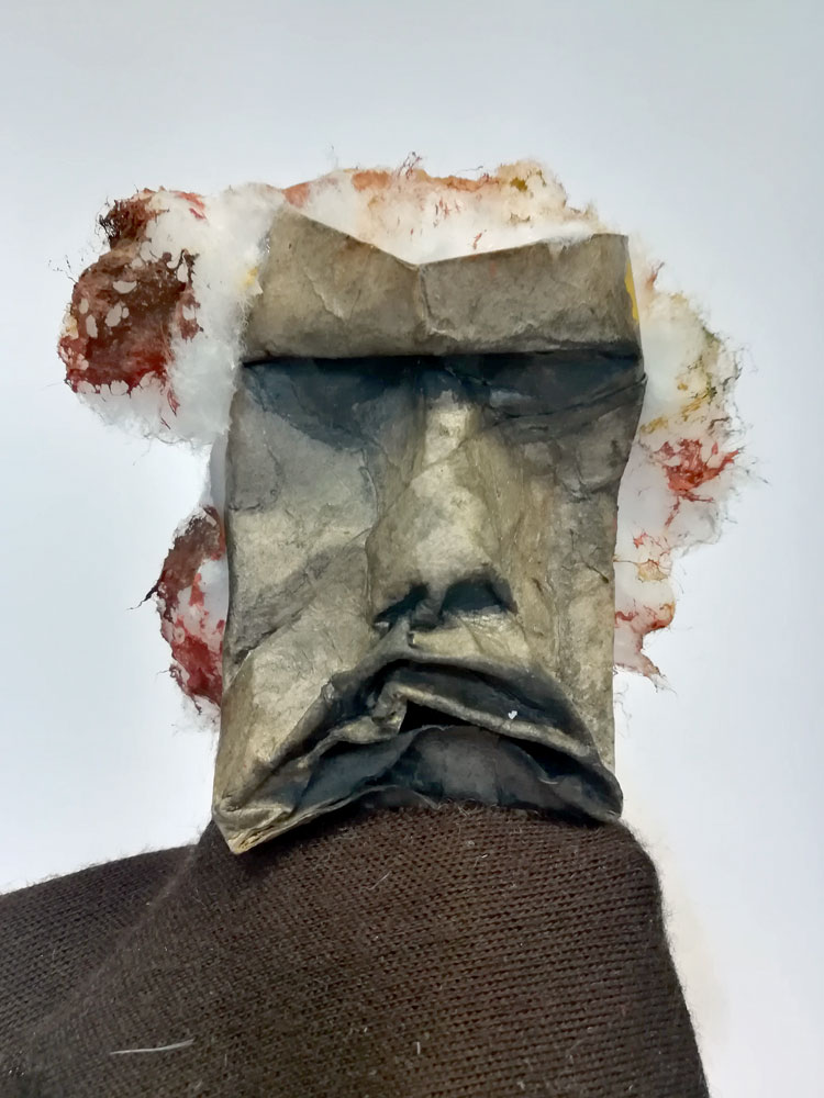 Der eigentliche Fokus bei dieser Aufgabenstellung lag auf den doppelköpfigen Gesichtern, welche aus Klopapierrollen gefaltet und anschließend mit ein wenig Farbe belebt wurden. Wir Schüler*innen haben jedoch, wie immer, unser eigenes Ding daraus gemacht und uns mehr auf das Kleidungsdesign aus alten upgecycelten Materialien fokussiert. Das war auch der amüsanteste Part der Aufgabe, da es da auf unsere individuelle Kreativität ankam und wir die Freiheit hatten, eigene Designs zu kreieren. Nachdem wir unsere Skulpturen fertiggestellt hatten, zeichneten wir mit Kohle eine comicartige Serie über unsere Frenemies.