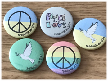Wir alle sind betroffen von den Ereignissen in der Ukraine. Aus diesem Grund bietet unser AK Courage gegen eine Spende von 1€ oder mehr einen „Friedensbutton“ an. Der Verkauf findet am Freitag und Montag jeweils in der ersten großen Pause statt.
