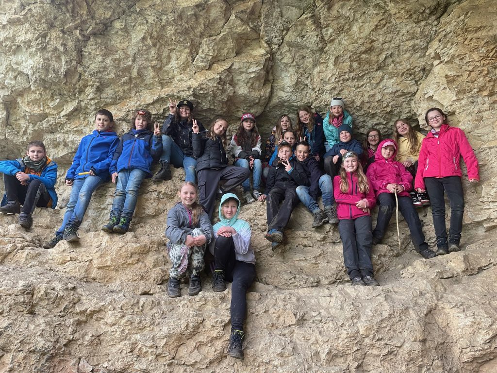 Das Gelernte erleben – das war das Ziel der Exkursionen, die die Klassen 5a und 5b mit ihrem Geografielehrer Herr Geitz und ihren Biologielehrerinnen Frau Friedrich und Frau Schneider sowie den Referendarinnen Frau Pfeuffer und Frau Nutz im Mai durchführten. Ganz nach dem Motto „Es gibt kein schlechtes Wetter, nur schlechte Kleidung“ trotzten die Schüler*innen und Lehrer*innen dem Regen und erkundeten jeweils ein Gebiet der Schwäbischen Alb, mit der sie sich in den Wochen zuvor im Geografieunterricht beschäftigt hatten. Während die Klasse 5a mit dem Zug nach Owen fuhr und von dort etwa 8 km auf die Burg Teck und über den Gelben Felsen zurück wanderte, fuhr die Klasse 5b nach Bad Urach und wanderte etwa 7 km am Uracher Wasserfall vorbei zur Burgruine Hohenurach. Dabei erkundeten die Schüler*innen ursprünglich belassene Karsthöhlen, hörten verschiedene Sagen, entdeckten Feuersalamander und lernten zahlreiche Frühblüher kennen. Trotz nasser Füße und matschiger Hosen waren es zwei gelungen Exkursionen, bei denen alle viel Spaß hatten.