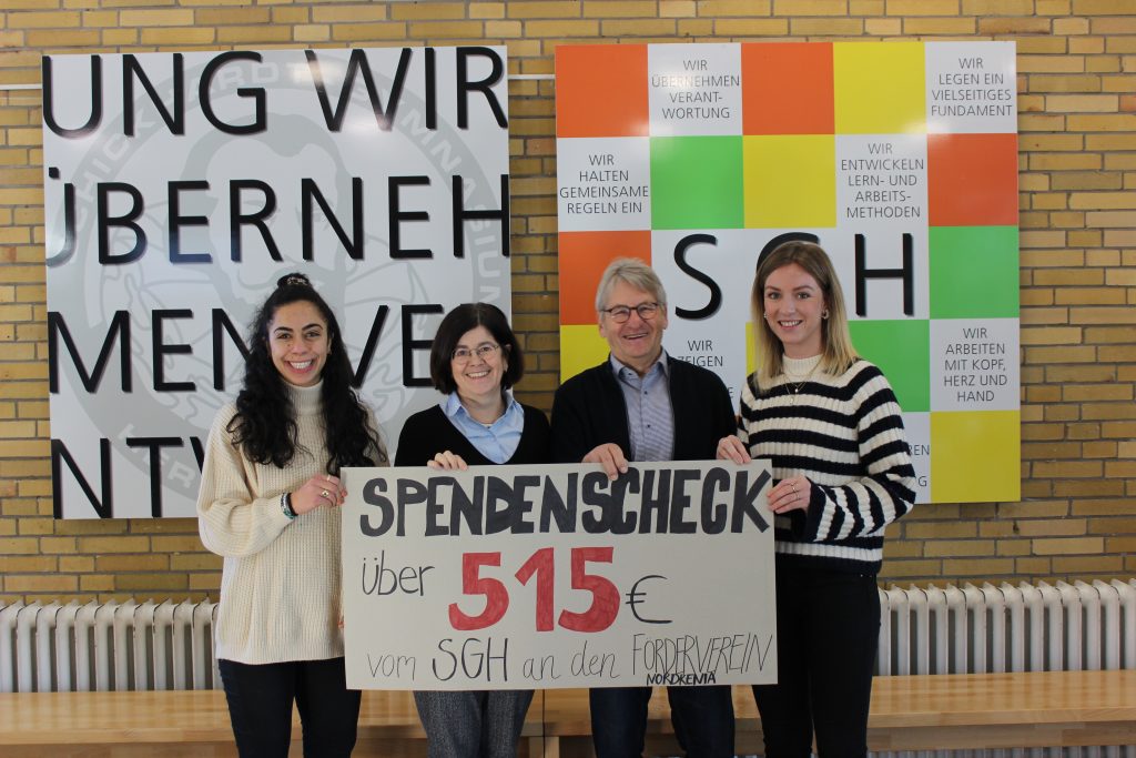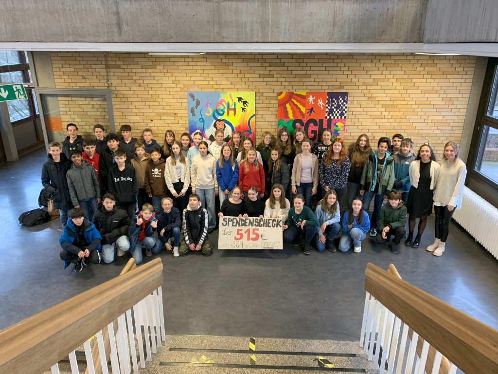 wochenlang sammelten die Klassen 7a und 7d fleißig Sachspenden für die erste Weihnachtstombola an unserer Schule. Am Mittwoch, den 20. 12. 2023 war es dann soweit und Lehrkräfte und Schülerinnen und Schüler konnten Lose erwerben. Durch das Engagement der beiden Klassen kamen sage und schreibe 515 Euro zusammen, die am 16. 1. 2024 Klaus Holzäpfel für den Förderverein Nordkenia überreicht werden konnten.