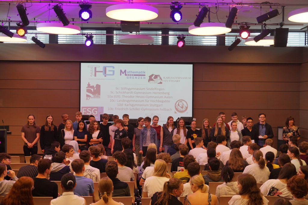 Die Klasse 9c des SGH hat bei der diesjährigen Auflage des Mathematik-Wettbewerbs „Mathematik ohne Grenzen“, im Bereich Nord-Baden-Württemberg, den zweiten Platz unter 136 teilnehmenden Klassen belegt. Aufgrund dieser beindruckenden Leistung wurde die Klasse am 20 Juni zur feierlichen Preisverleihung in der Experimenta in Heilbronn eingeladen. Nach der Preisverleihung durfte die Klasse die Ausstellung der Experimenta erkunden. Bei diesem Wettbewerb werden im Klassenverbund verschiedene Matheaufgaben gelöst, eine davon auch in einer Fremdsprache.