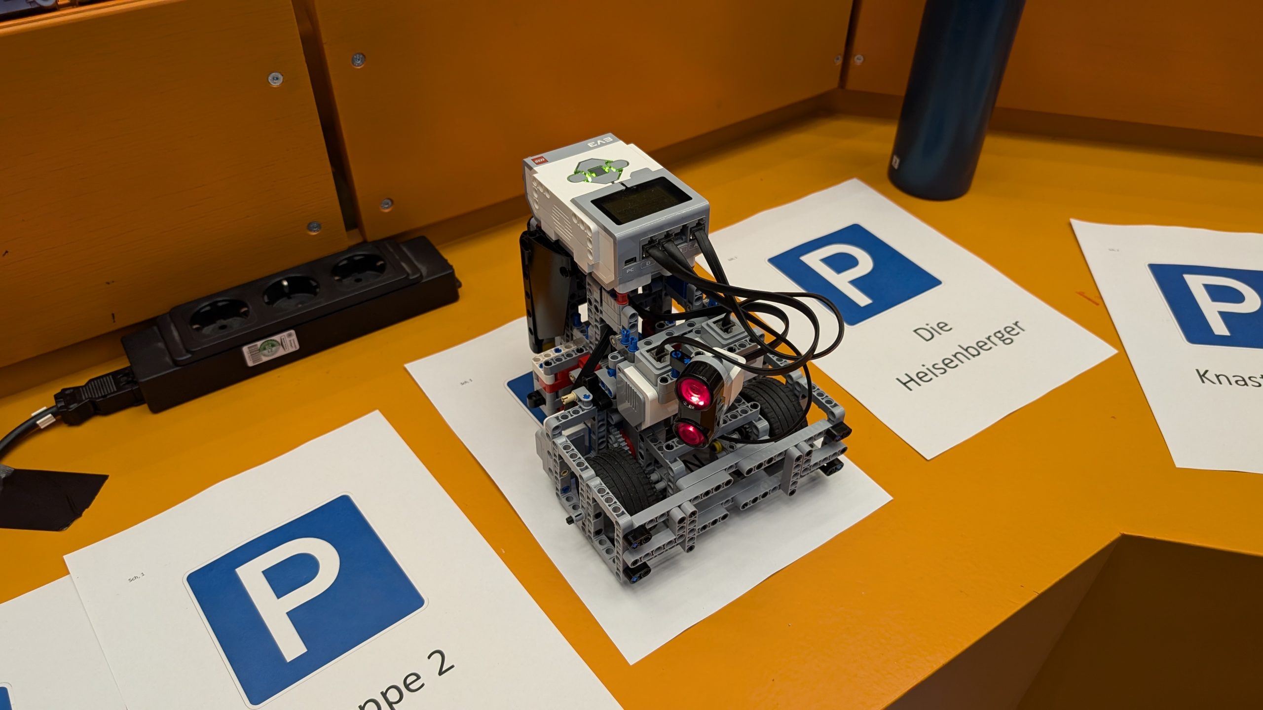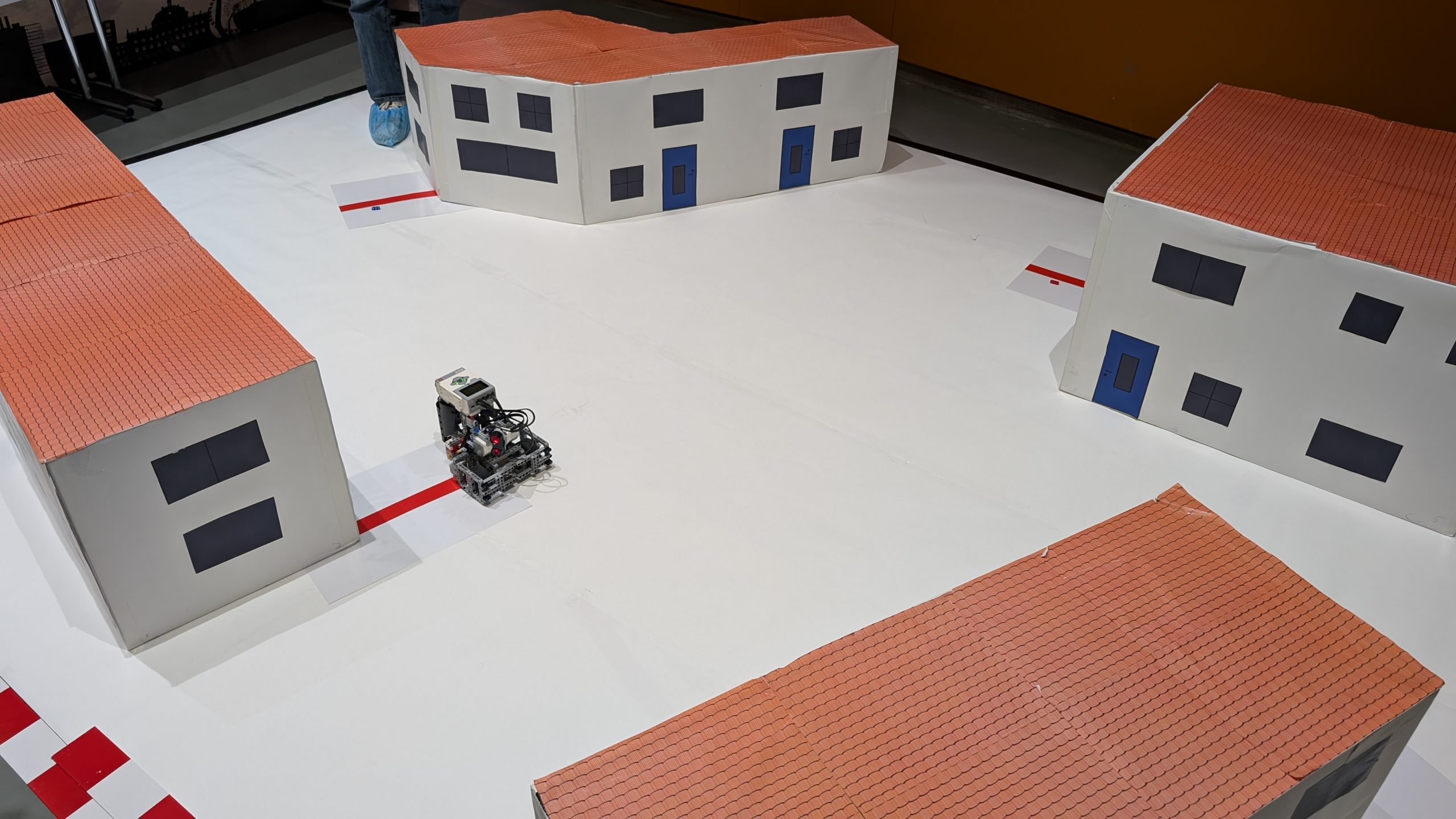 In diesem Jahr bestand die Aufgabe darin, einen autonomen Lieferroboter zu konstruieren und zu programmieren, der mehrere Häuser anfährt und dort an einer vorgegebenen Markierung Pakete abliefert.