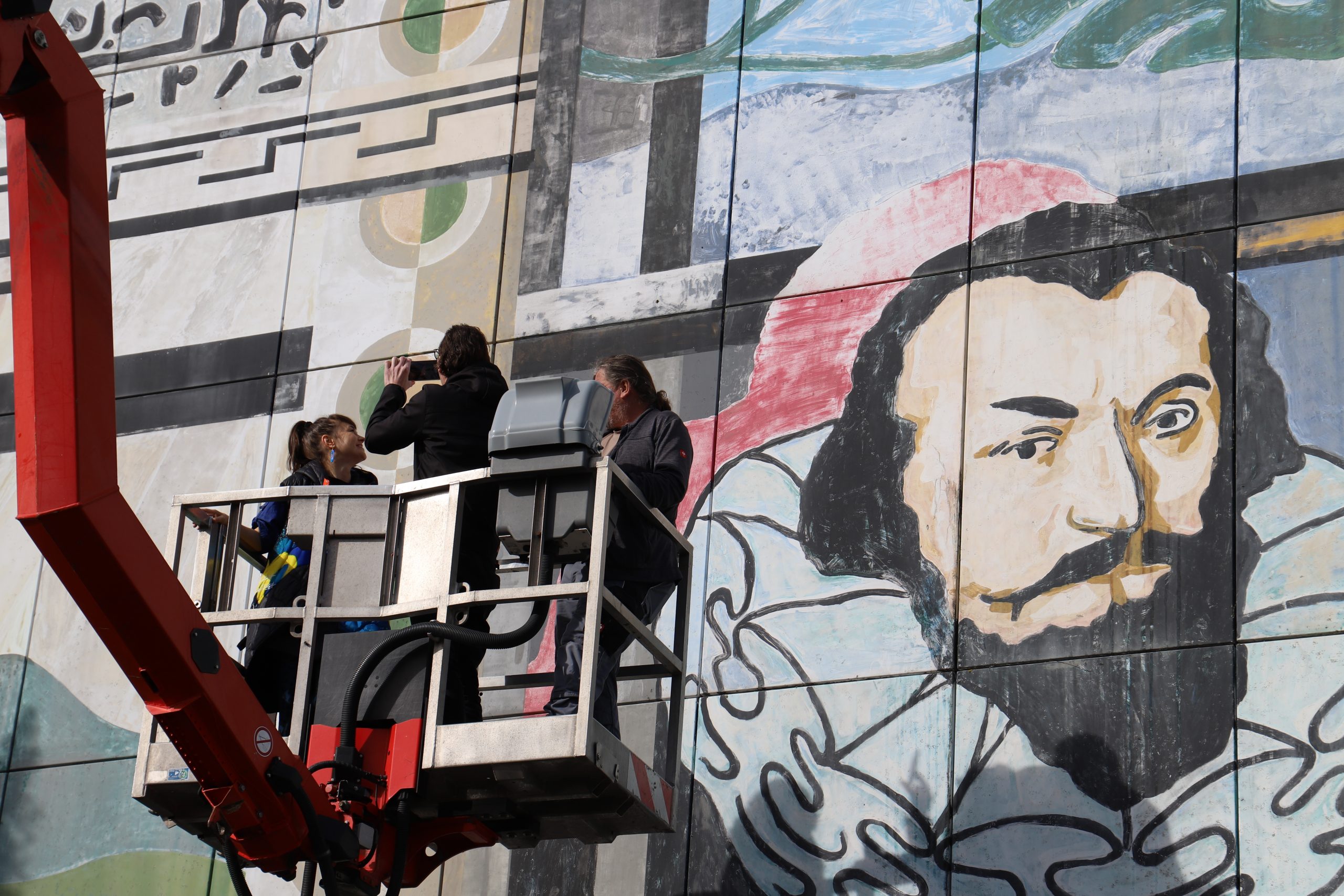 Mehr als dreißig Jahre lang wurden Besucherinnen und Besucher des Schickhardt- Gymnasiums von einem bunten Kunstwerk empfangen, das in seiner Art einzigartig war und die gesamte Ostfassade des Schulgebäudes einnahm. Doch seit dem 12. April 2022 zeigte sich diese Wand öd und leer- die bemalten Platten waren abgenommen worden. Jedoch nicht für immer. Im Jubiläumsjahr 2022, zum 60. Geburtstag des Schickhardt, hatte der Förderverein der Schule, die Freunde des Schickhardt- Gymnasiums, es sich zum Ziel gemacht, das etwas verblasste und in die Jahre gekommene Bild zu erneuern. Ein solches Projekt zu stemmen ist auch finanziell eine Herausforderung und so nahm die Schule dankbar das Angebot der Freunde an, einen Großteil der Finanzierung zu übernehmen.