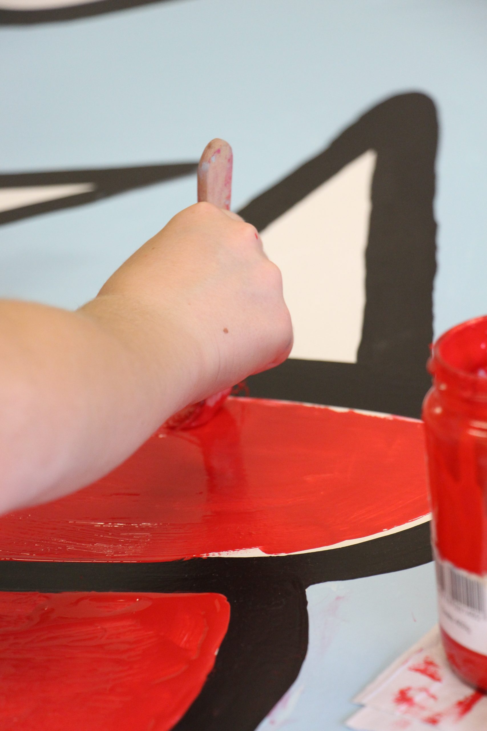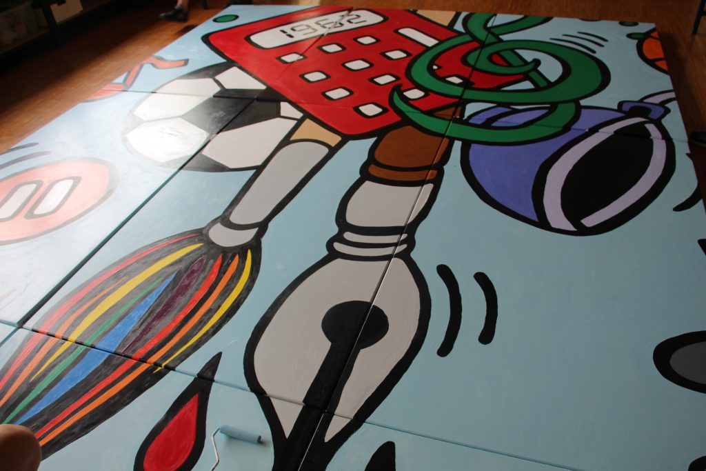 Beim Ausmalen waren hauptsächlich die jüngeren Schülerinnen und Schüler mit Feuereifer dabei. Auch während des Malens ließen es sich die Freunde des Schickhardt- Gymnasiums nicht nehmen, das Projekt zu unterstützen, indem sie immer wieder vorbeikamen und an heißen Tagen mit Eis für Abkühlung sorgten.