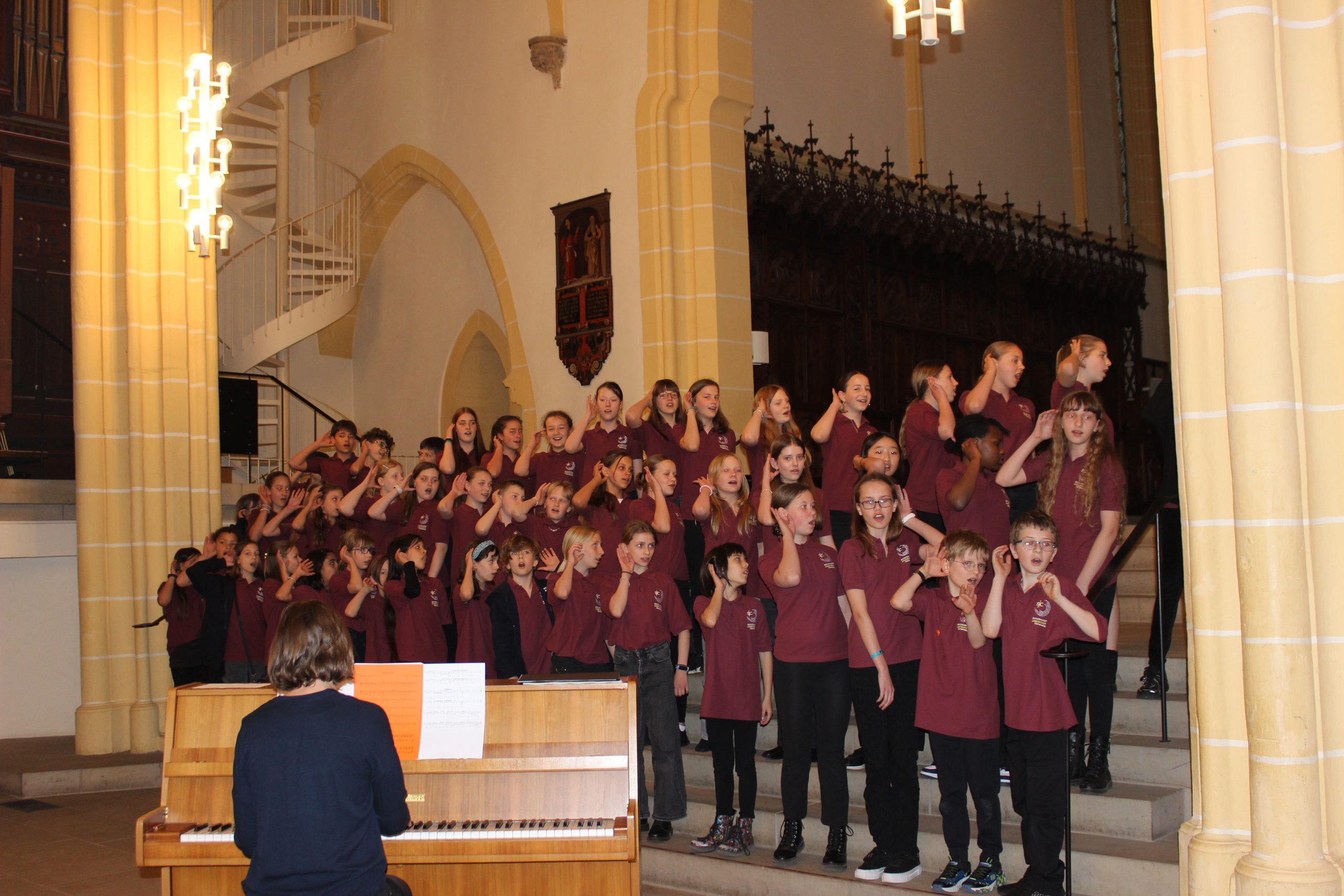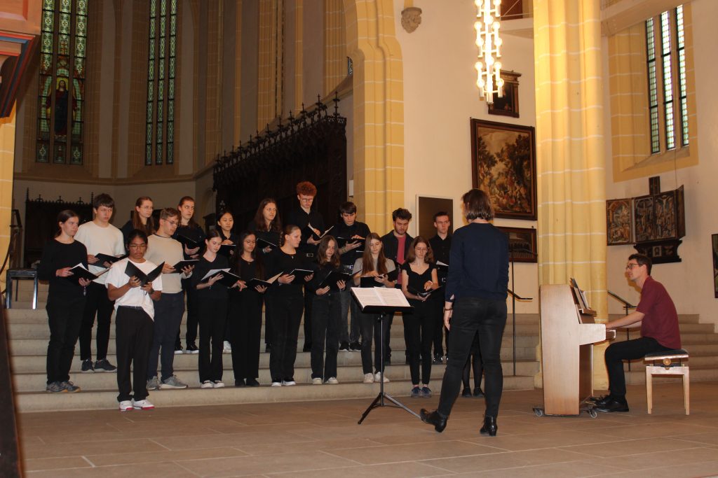 Bereits zum zweiten Mal innerhalb einer Woche brachten die jungen Chöre des Schickhardt- Gymnasiums und die Kinder- und Jugendkantorei die Stiftskirche zum Klingen. Unter der Leitung von Patrick Erhard und Miriam Klüglich für das Schickhardt- Gymnasium und Christa Feige und Johannes Fiedler für die Kinder- und Jugendkantorei präsentierten die fast 100 Sängerinnen und Sänger ein abwechslungsreiches und stimmungsvolles Programm.