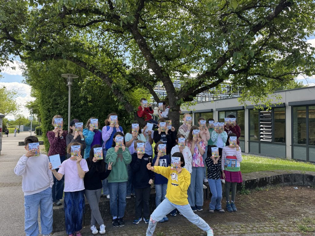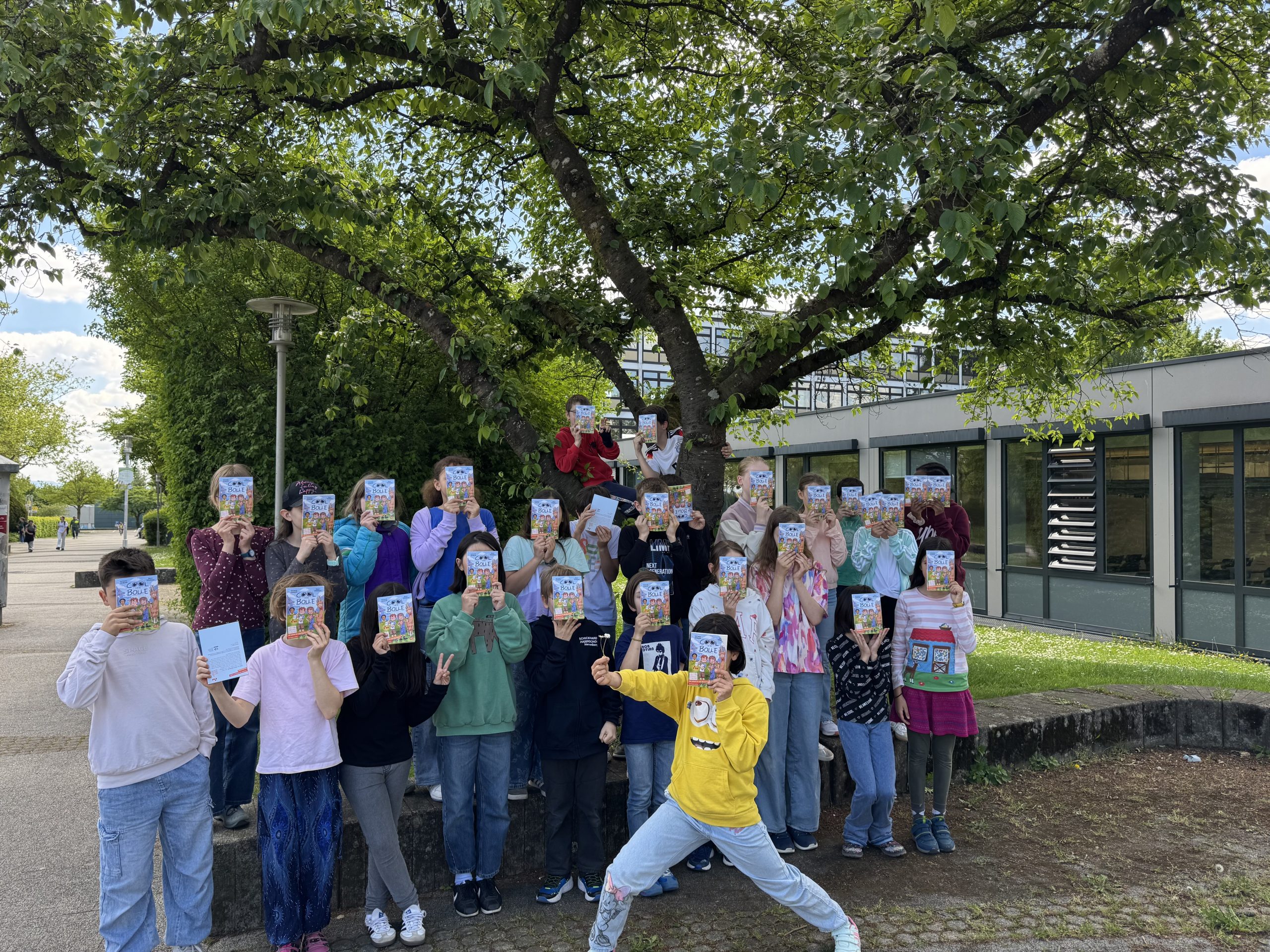 Auch die anderen 5er Klassen nahmen an dieser Aktion „Ich schenk dir eine Geschichte“ zum „Welttags des Buches“ teil und holten sich ihre geschenkte Geschichte in der Buchhandlung Schäufele ab.