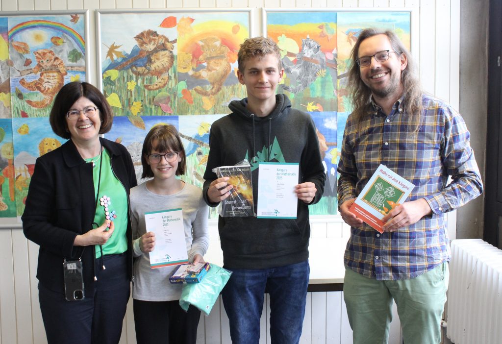 Am diesjährigen Känguru-Wettbewerb in Mathematik nahmen am SGH 74 Schülerinnen und Schüler teil. Vor allem zahlreiche Fünftklässler haben fleißig geknobelt. Das hat uns sehr gefreut, macht weiter so! Drei unserer Schüler*innen zeigten außergewöhnliche Leistungen und wurden mit einem Preis ausgezeichnet: Lena Novy aus der 6d erhielt ein Spiel und ein T-Shirt für den größten „Känguru-Sprung“ (die meisten aufeinanderfolgenden richtig gelösten Aufgaben der Schule), Julius Breitner und Benjamin Fischer aus der 10a gewannen einen Buchpreis. Zur Belohnung für ihre Mühe und ihr Engagement bekamen alle 74 Teilnehmenden eine Urkunde und eine Rätselschlange als „Preis für Alle“. Wir freuen uns, dass so viele mitgemacht haben und sind schon gespannt auf den Wettbewerb im nächsten Jahr! Vielen Dank an dieser Stelle an Frau Teufel, Frau Koch, Herrn Schmid und Herrn Zehender für Organisation und Durchführung des Wettbewerbs an unserer Schule.