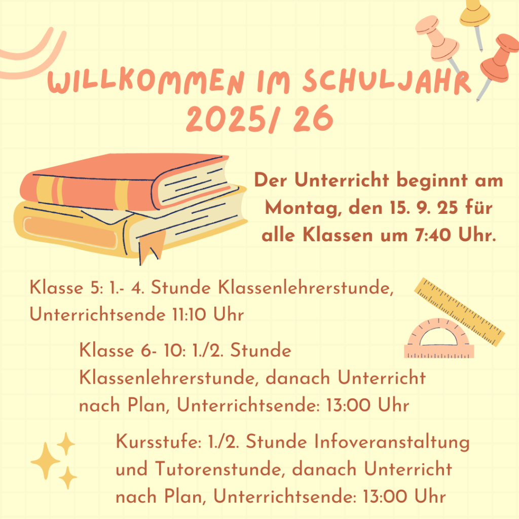Start ins neue Schuljahr- Stundenpläne 8. September 202527. September 2025 Redaktion Schulhomepage Die Stundenpläne finden Sie hier: Stundenpläne 2025+26_Klassen 5-J2_Stand 12.09.25Herunterladen Falls der Zugang zu Webuntis über IServ nicht funktioniert, findet sich hier eine Anleitung zum Einrichten des Accounts. Anmeldung bei WebuntisHerunterladen Allgemein