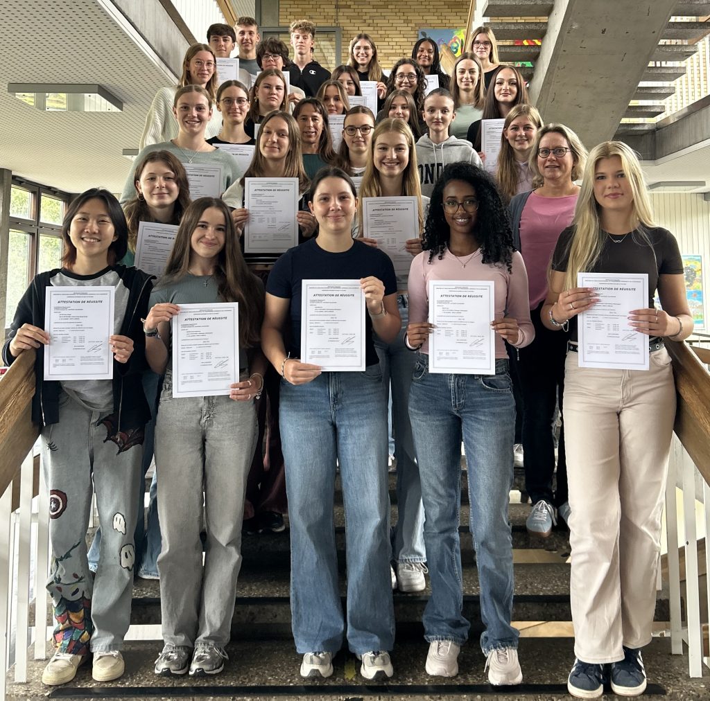 Viele Schülerinnen und Schüler träumen davon, einmal in ihrem Leben im Ausland zu leben und zu arbeiten. Grundvoraussetzung dafür ist es, die Sprache des Landes zu sprachen. Für das französischsprachige Ausland rückt dieser Traum nun für 38 Schülerinnen und Schüler der zehnten Klassen in greifbare Nähe. Sie erhielten nach fünf Jahren Französischunterricht und einer schriftlichen und mündlichen Prüfung in Französisch das DELF- Zertifikat. Dazu wurden sie von ihren Lehrerinnen Frau Breckel, Frau Klüglich und Frau Wendel ein Jahr lang intensiv vorbereitet. Das DELF Zertifikat ist ein international anerkanntes Sprachenzeugnis und wird vom Institut francais verliehen. Mit ihm können sich die Schülerinnen und Schüler für ein Studium, einen Job oder ein Praktikum in Frenakreich bewerben.