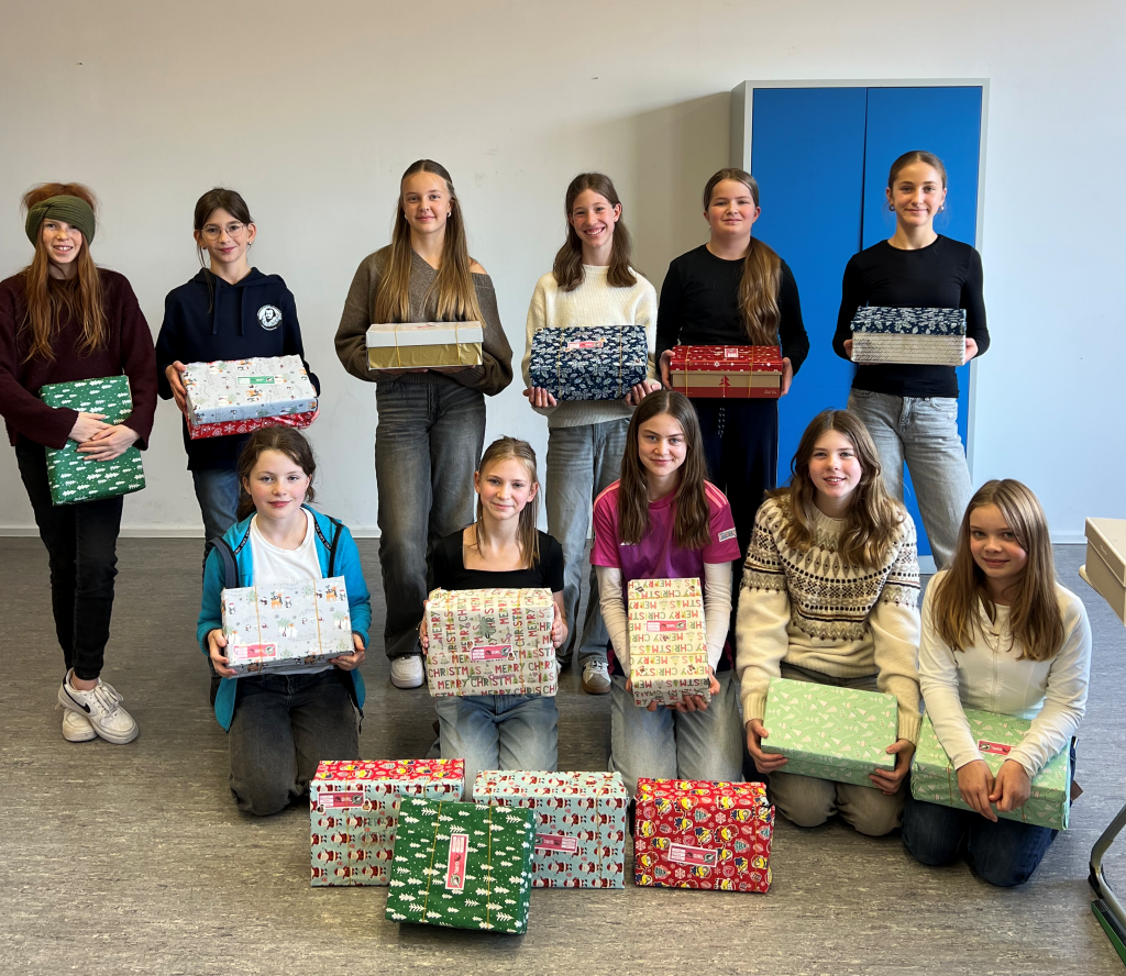 Am 13. November packten Schülerinnen unserer Schule gemeinsam Kartons für die Aktion Weihnachten im Schuhkarton. Organisiert vom AK Courage beteiligte sich unsere Schule in diesem Jahr zum ersten Mal an der weltweiten Geschenkaktion, die Kindern in Not eine besondere Weihnachtsfreude bereitet.