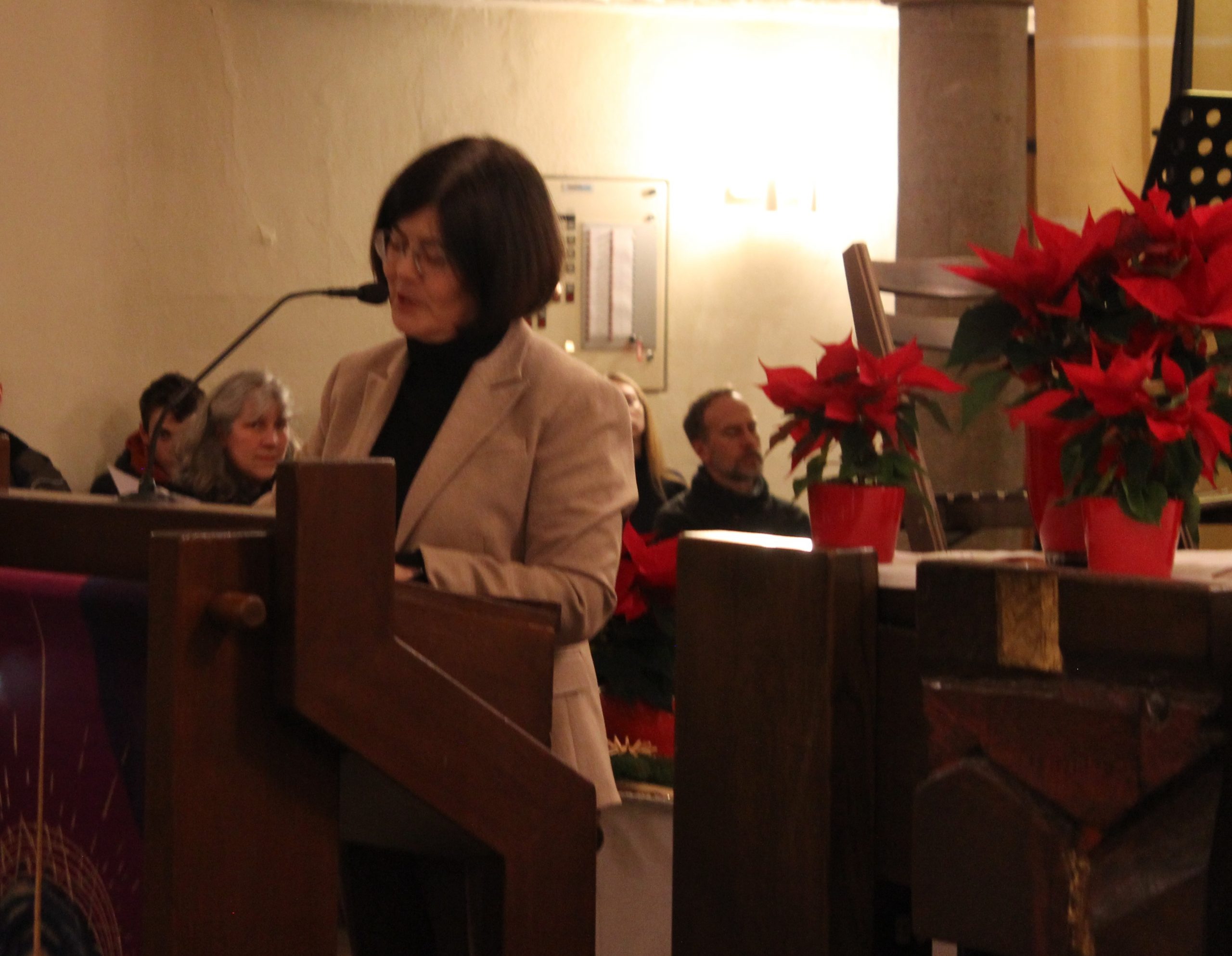 Nach dem Schlussapplaus richtete Schulleiterin Heike Bertsch- Nödinger noch einmal einige Worte an das Publikum. Noch ganz unter dem Eindruck der wunderbaren Musik, die voller Licht und Hoffnung sei, dankte sie zunächst den Freunden des Schickhardt- Gymnasiums, ohne die ein solcher musikalischer Abend nicht möglich wäre, für die Unterstützung. Sie betonte wie wichtig jede einzelne Stimme für das Gelingen eines solchen Abends sei und was entstehen könne, wenn Menschen aufeinander hörten. So zeige sich auch die Bedeutung der Musik im täglichen Miteinander. Nach einer Zugabe empfing der festlich erleuchtete Marktplatz das Publikum und die Winternacht wurde von dem Weihnachtsstern- Stella Natalis – erhellt.