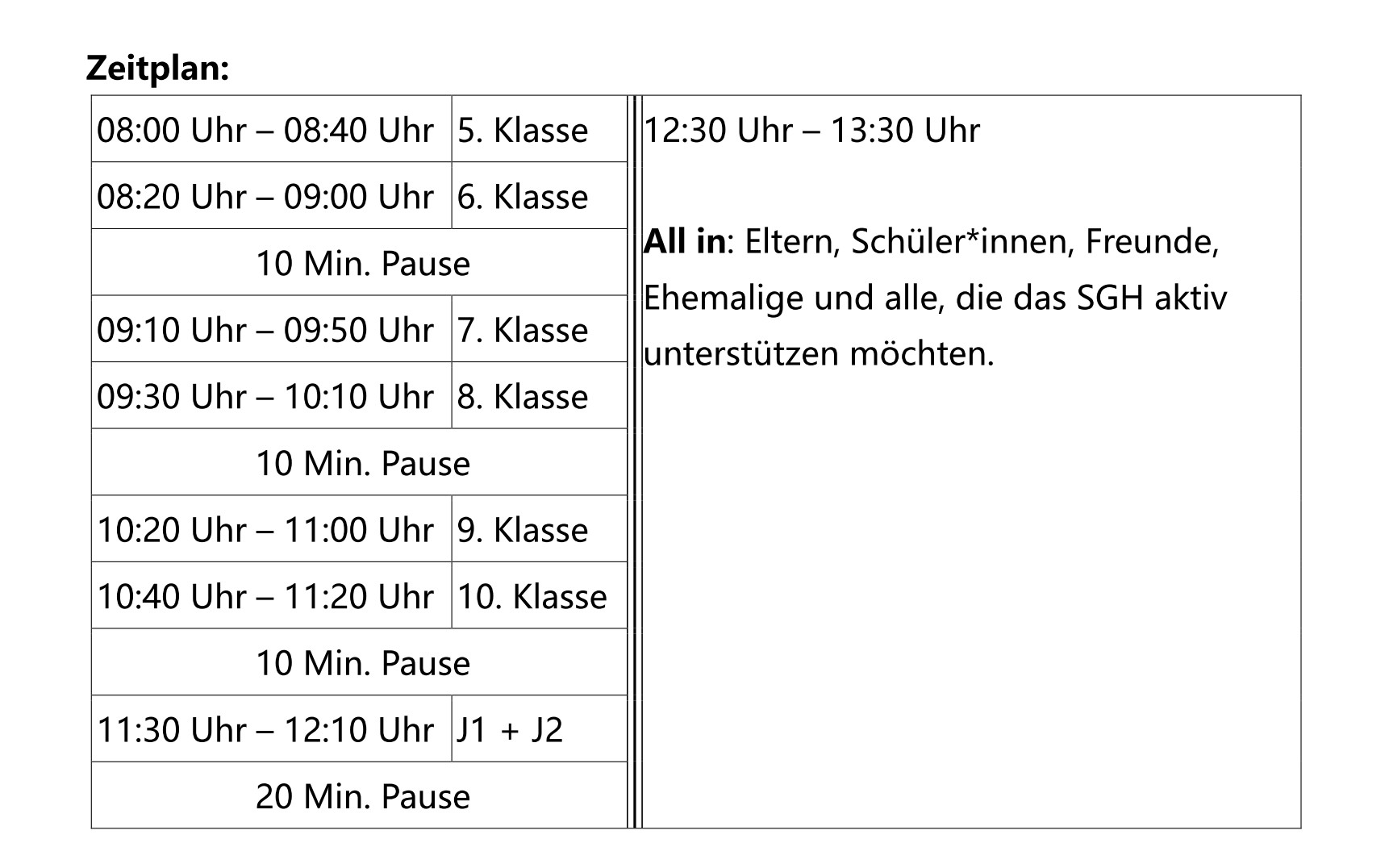 Verwendungszweck: Spendenlauf SGH + Klasse + Name