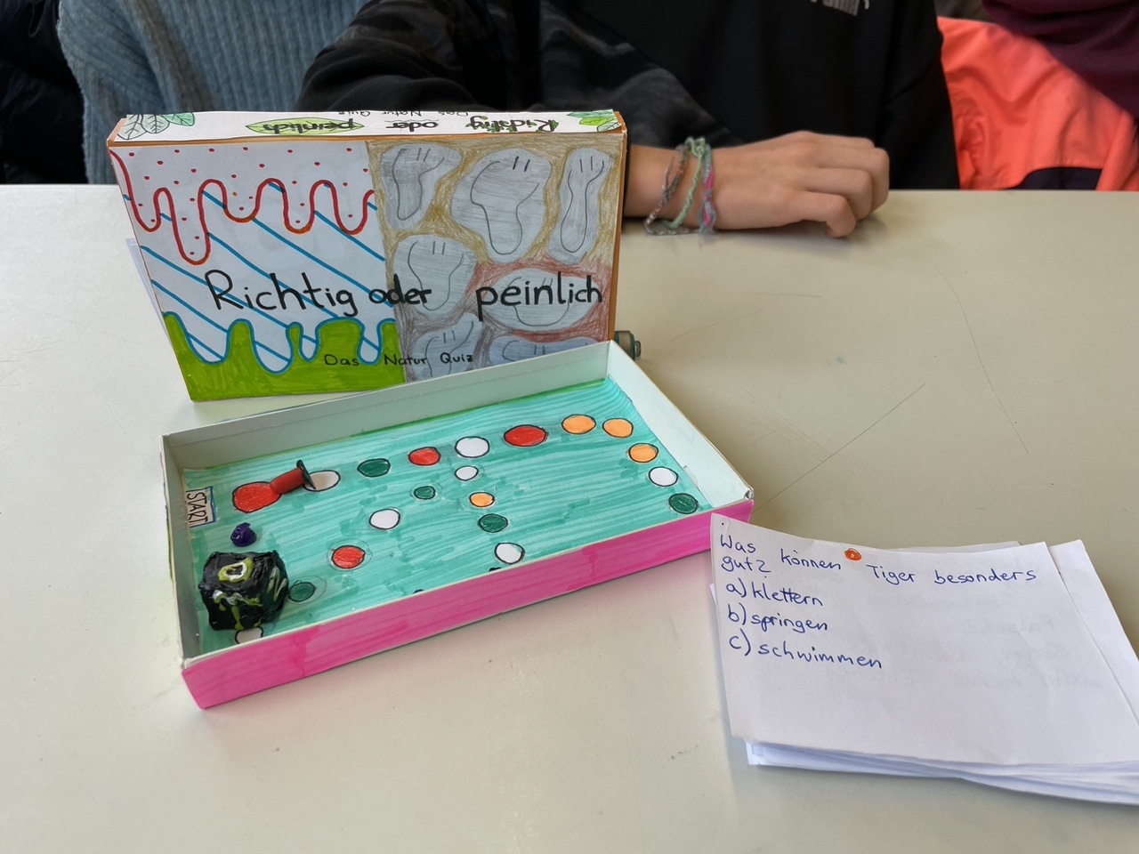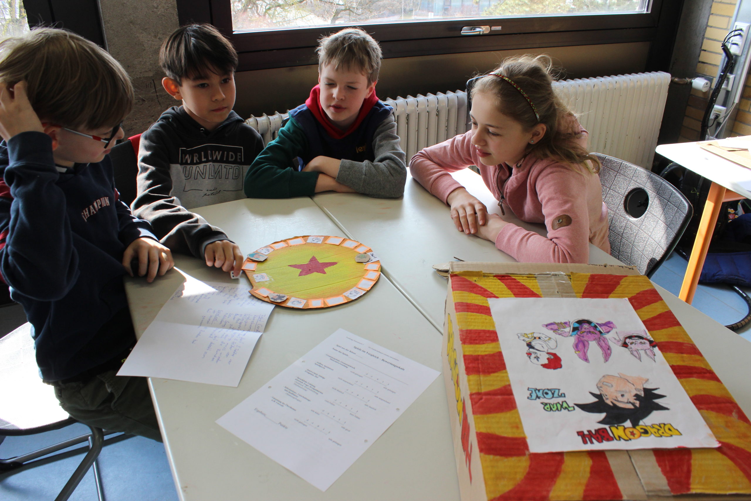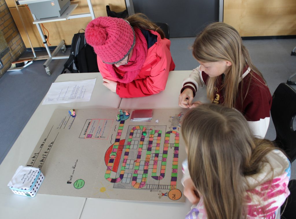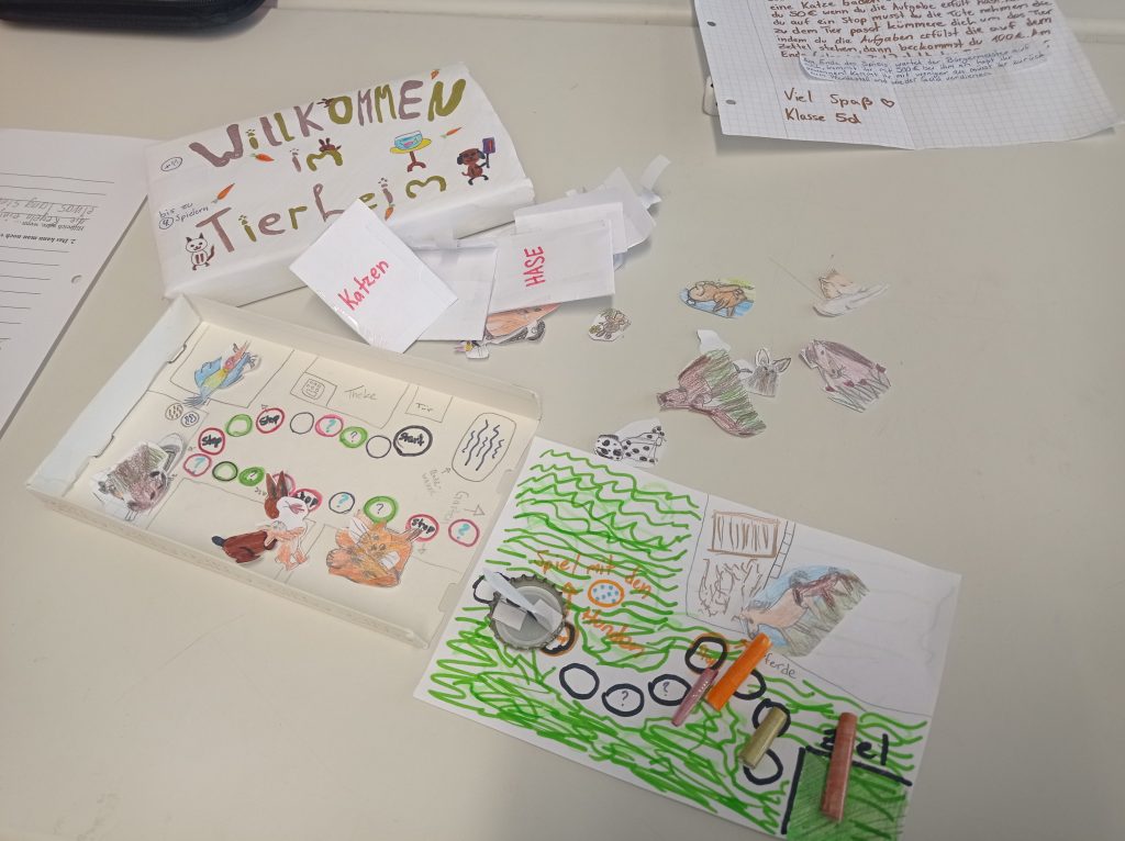 Die fünften Klassen bastelten und entwarfen eifrig Gesellschaftsspiele, komplett mit Spielbrett, Material, Anleitung und allem, was dazugehört. Am letzten Tag wurden die Spiele untereinander ausgetauscht und nach verschiedenen Kriterien bewertet.