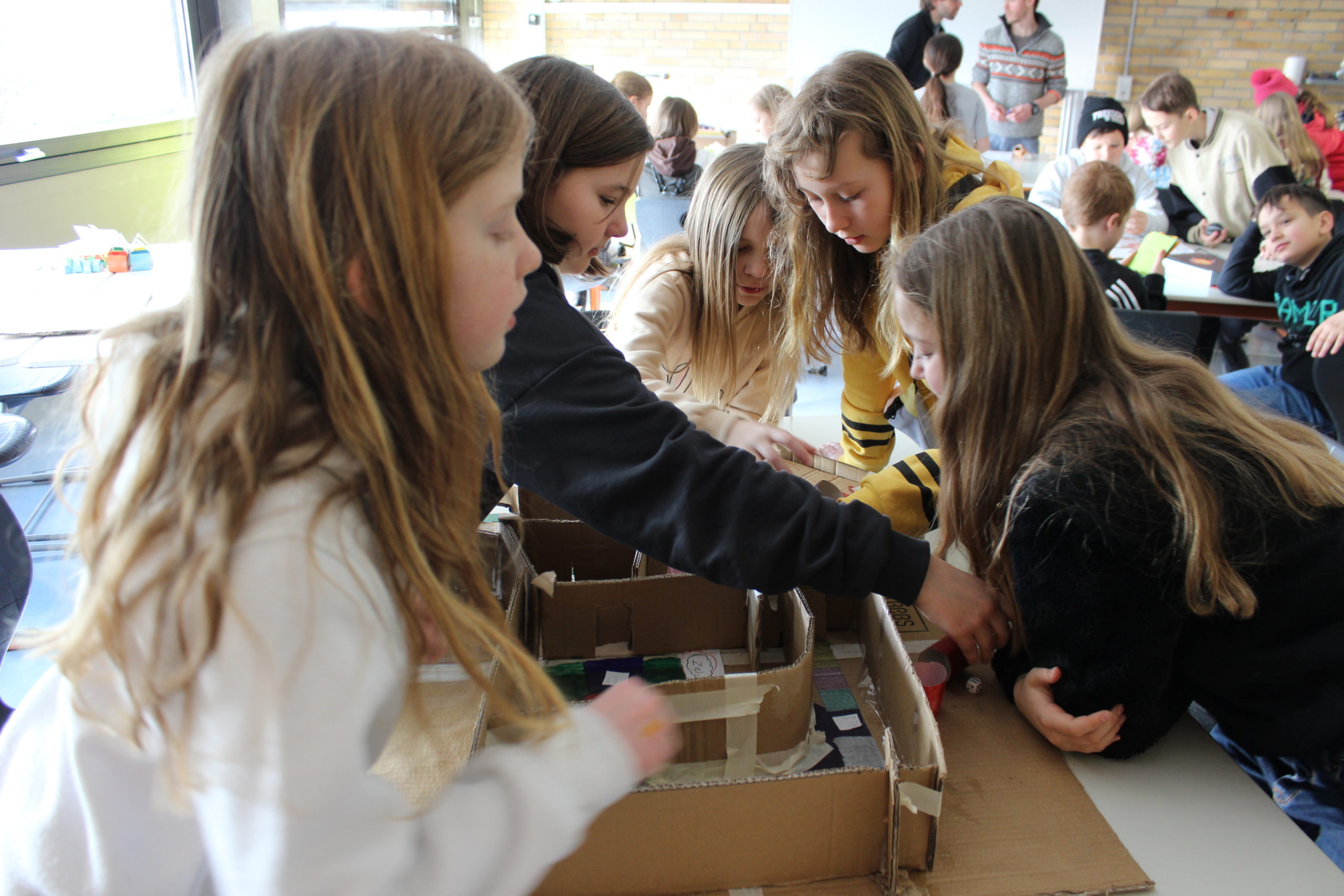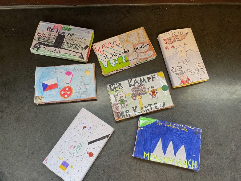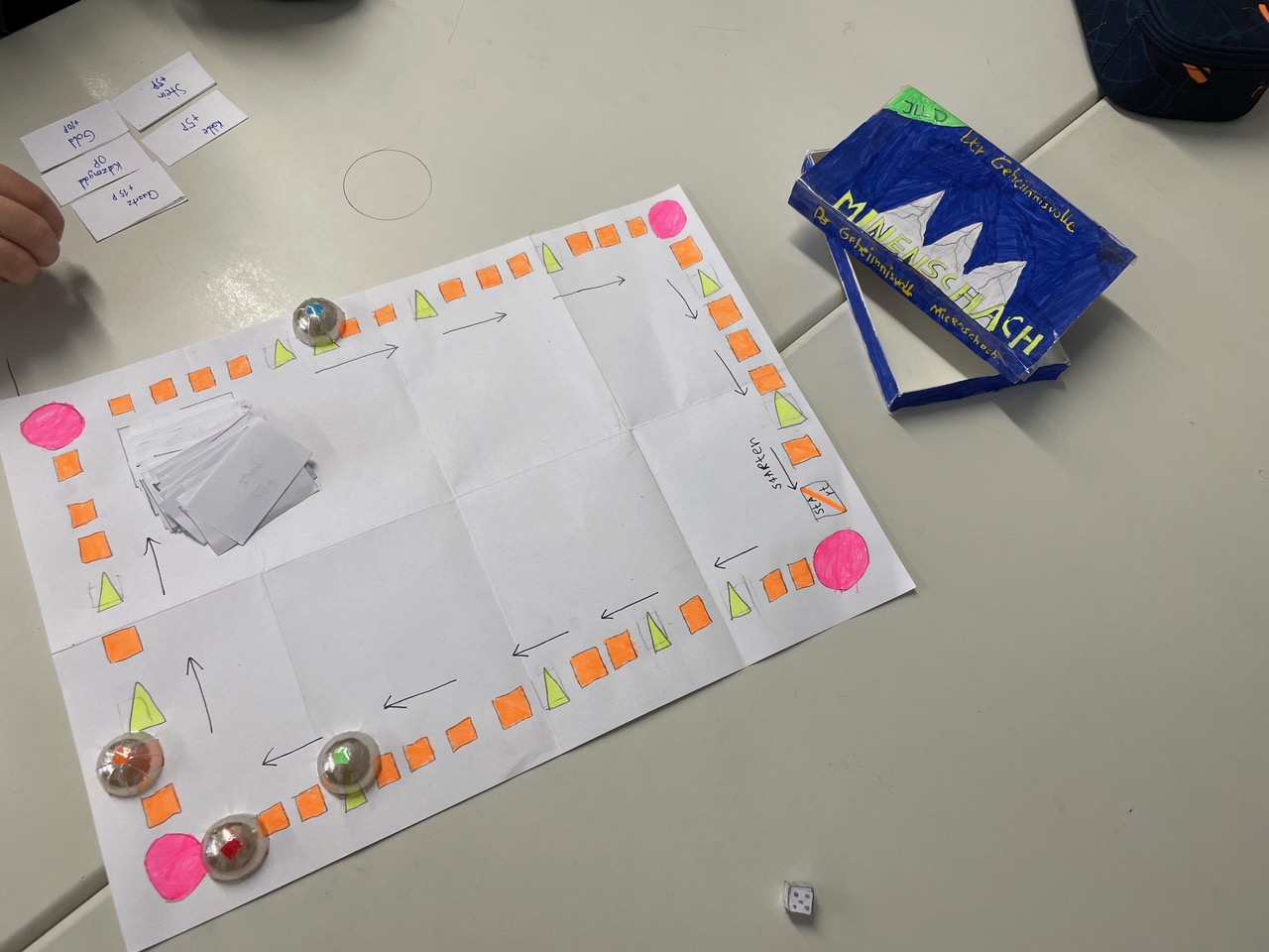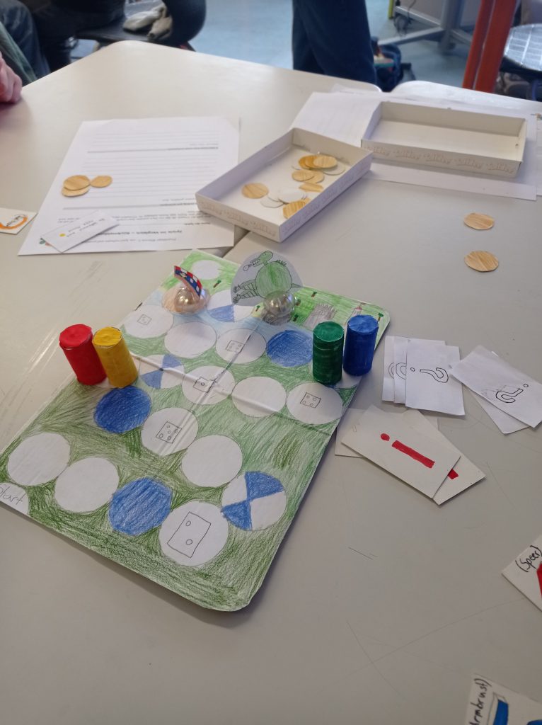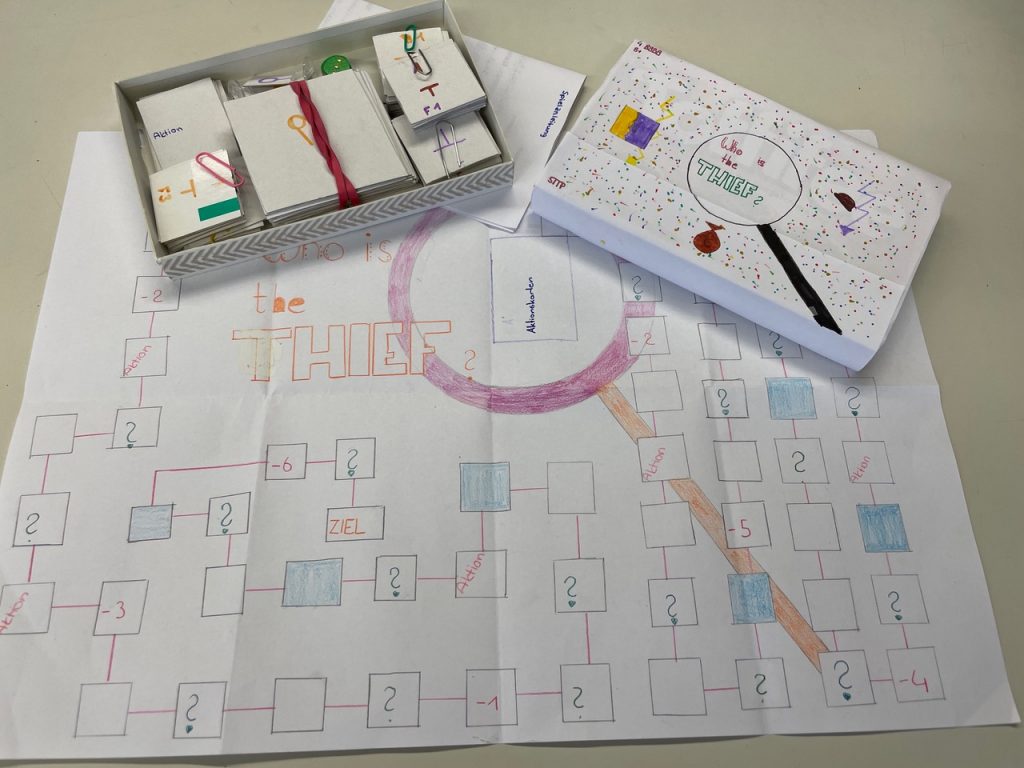 Die fünften Klassen bastelten und entwarfen eifrig Gesellschaftsspiele, komplett mit Spielbrett, Material, Anleitung und allem, was dazugehört. Am letzten Tag wurden die Spiele untereinander ausgetauscht und nach verschiedenen Kriterien bewertet.