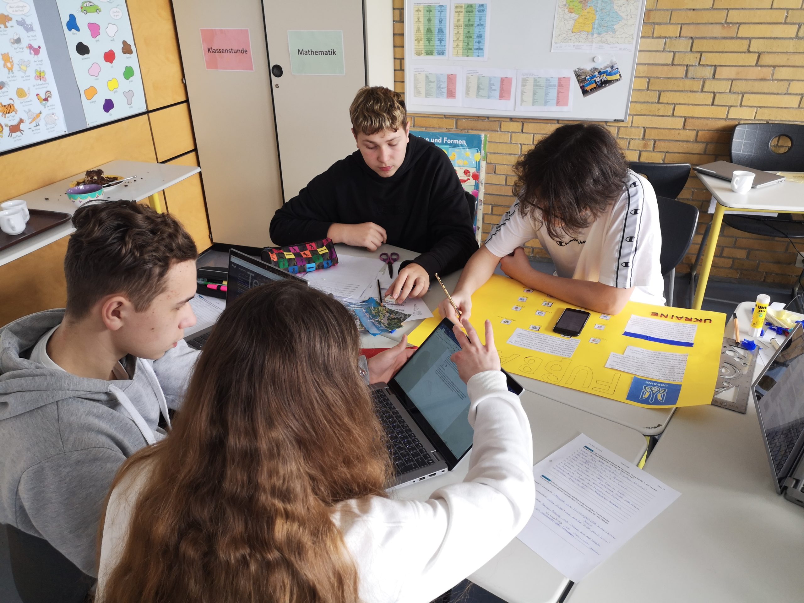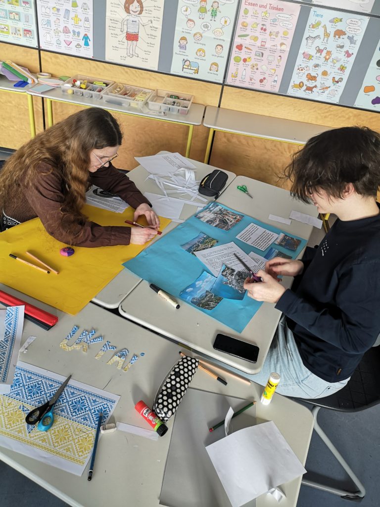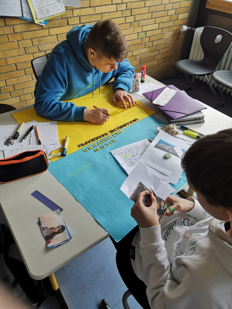 Die Schülerinnen und Schüler der Vorbereitungsklasse, die nicht in anderen Klassen beteiligt waren, hatten es sich zum Ziel gesetzt der Schulgemeinschaft Kunst, Kultur und das Lebensgefühl der Ukraine näherzubringen.