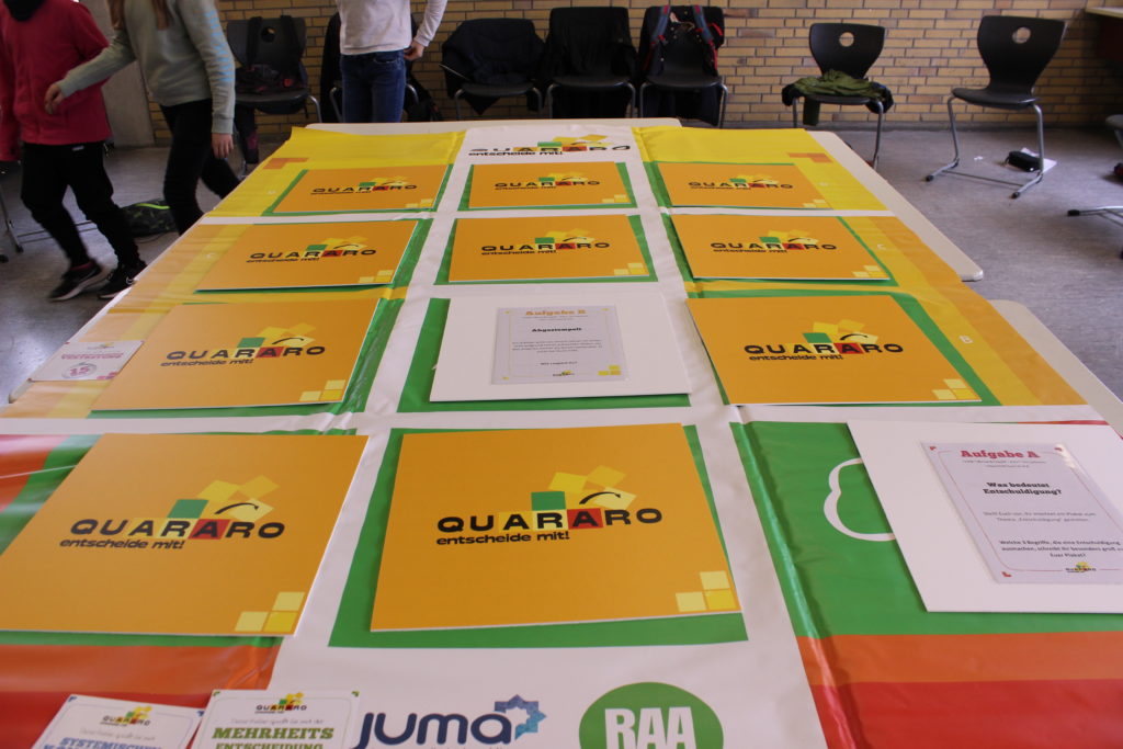 In der ersten Projektphase wurden die Projekte innerhalb der Klassen durchgeführt. Die fünften Klassen beschäftigten sich mit dem Erfinden und Erstellen von neuen Spielen, wobei die Herausforderung darin lag, dass nur die Materialien einer Toffifeeschachtel benutzt werden durften. Hier entstanden viele kreative Produkte- von Würfelspielen über Quizspiele bis hin zu actionreichen Bewegungsspielen. Am dritten Tag tauschten die Klassen untereinander die Spiele aus und kürten ihr Lieblingsspiel.