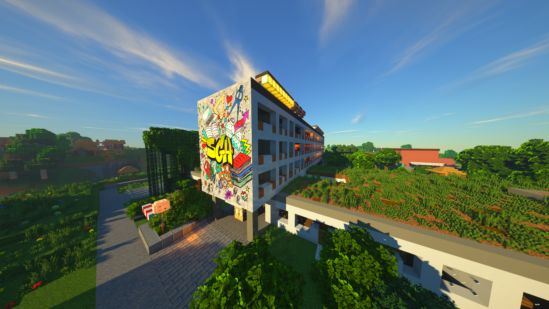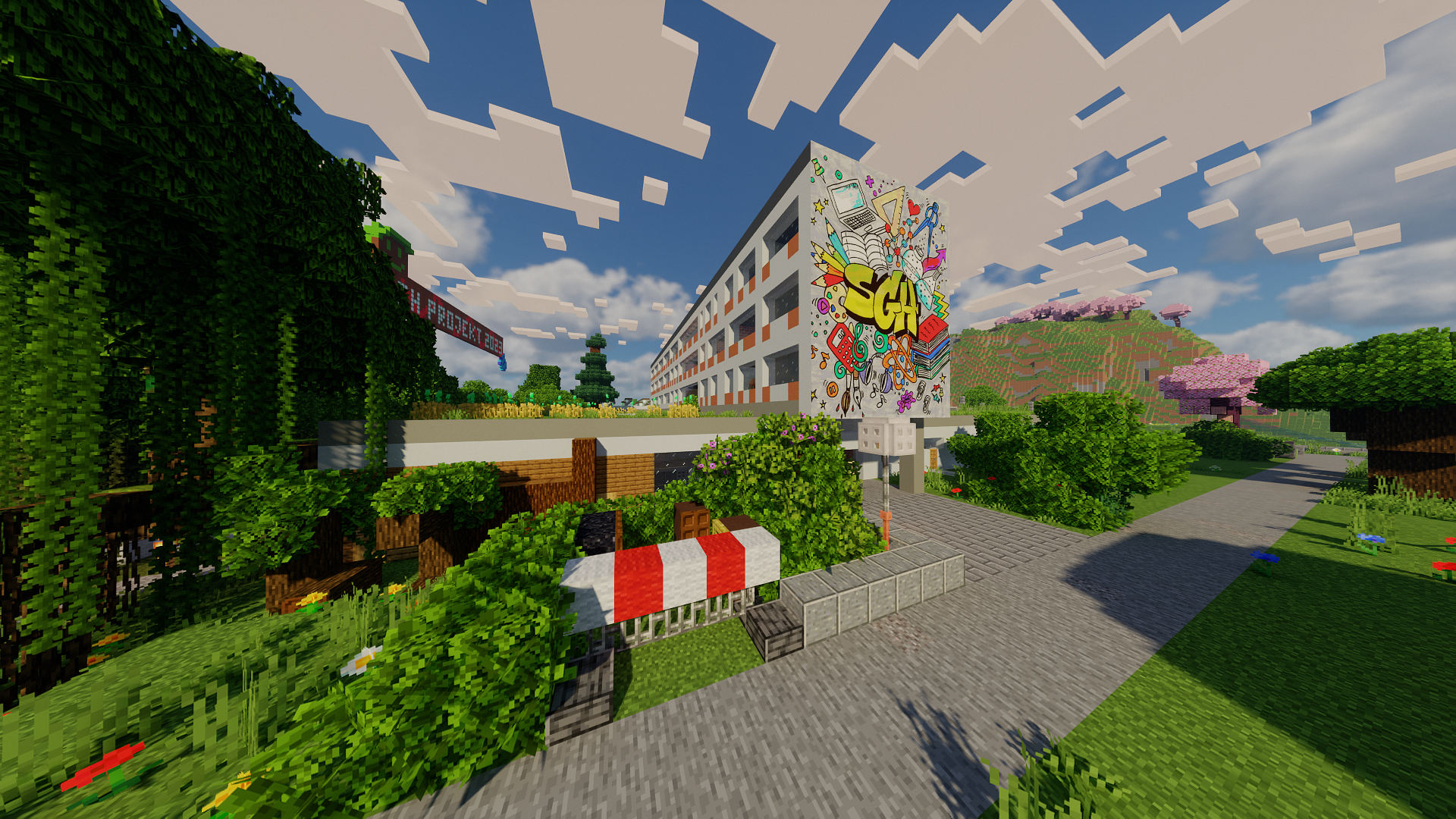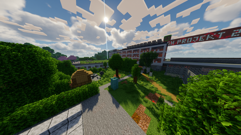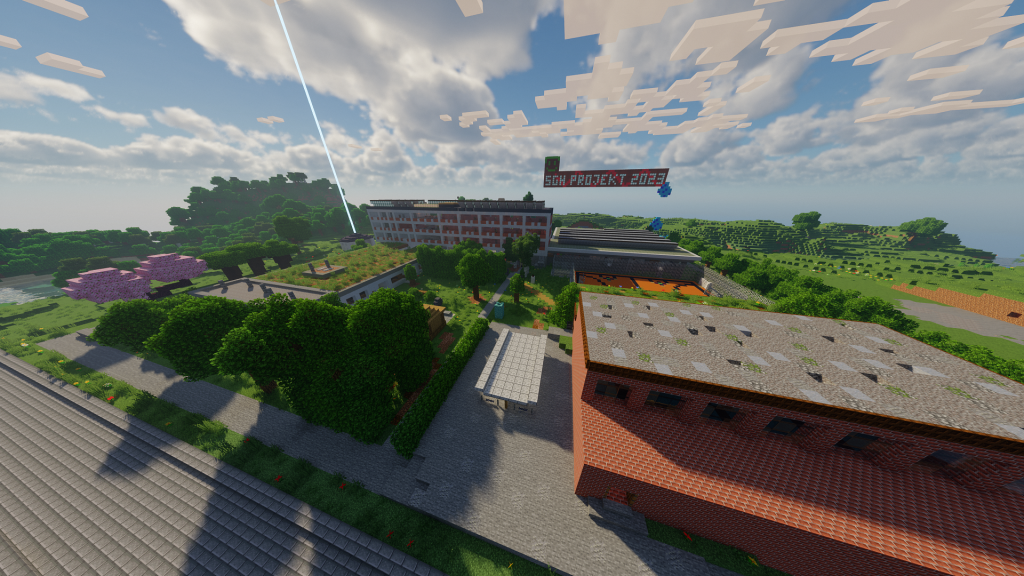 Einige unserer Schülerinnen und Schüler beschäftigten sich im Rahmen eines kreativen Projekts mit Minecraft. Sie bauten unsere Schule nach, was gar nicht so einfach ist wie man denkt. Gerade die Maße und Größenverhältnisse waren eine Herausforderung. Doch weil es so viele Teilnehmerinnen und Teilnehmer waren und diese sehr schnell arbeiteten, waren sie in der Lage, ein Klassenzimmer in 10 Minuten zu bauen. Durch Spaß waren sie motiviert am Arbeiten und Bauen.