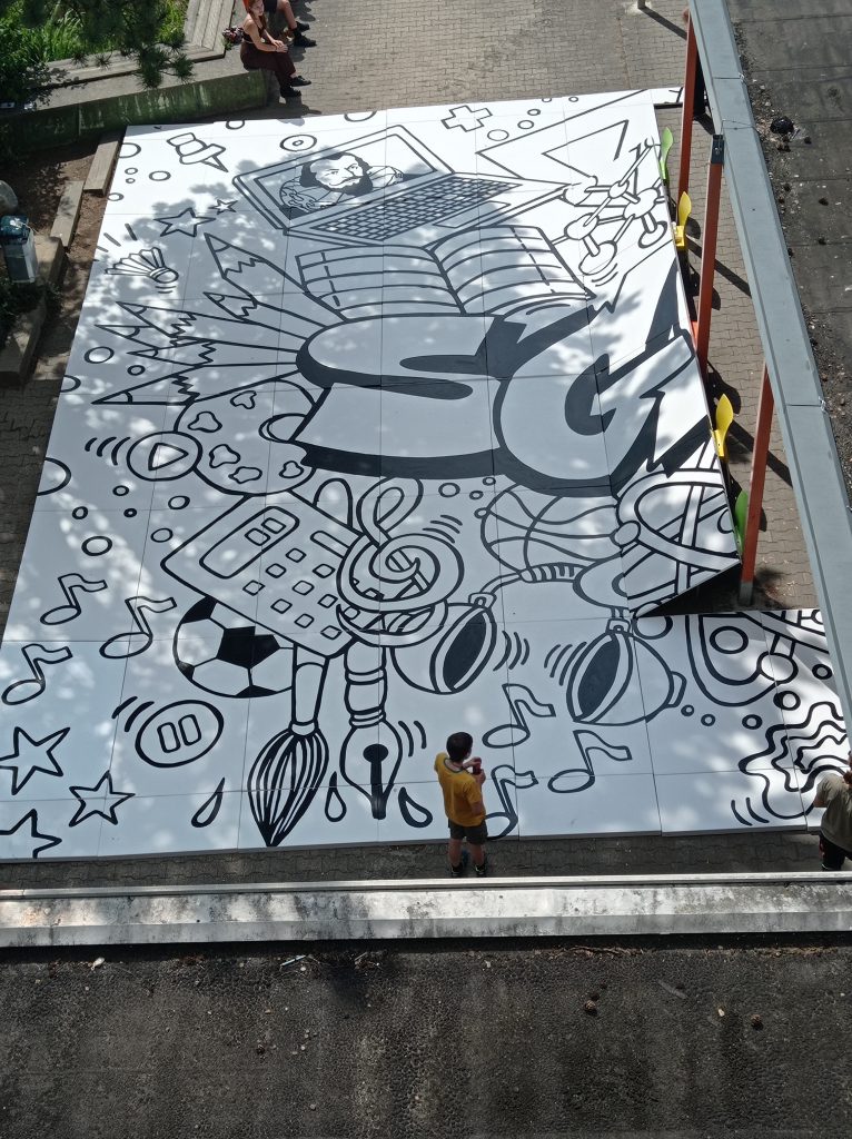 34 Teilnehmerinnen und Teilnehmer haben sich dazu entschieden, die Ostfassade der Schule in ein lebendiges Kunstwerk zu verwandeln. Ziel dieses Kunstprojekts war es, die Schule optisch aufzuwerten und gleichzeitig die künstlerischen Talente der Schülerinnen und Schüler zu fördern. Die Idee zu diesem Projekt entstand bereits im Jubiläumsjahr auf Anregung der Freunde des Schickhardt Gymnasiums. Neben dem Wunsch, die Schule optisch zu verschönern, waren viele der Teilnehmerinnen und Teilnehmer auch aus persönlichem Interesse an der Kunst dabei. Das in die Jahre gekommene Portrait Schickhardts soll durch ein farbenfrohes Gemälde ersetzt werden, das im vergangenen Schuljahr von der gesamten Schulgemeinschaft ausgewählt wurde. Um das Projekt, das in Form einer AG bereits das gesamte Schuljahr betrieben wird, weiter voranzubringen, haben sich die Teilnehmerinnen und Teilnehmer ein konkretes Ziel gesetzt: Bis zum Ende der Projekttage sollten die Outlines des Kunstwerks fertigstellt sein. Dies bedeutet, dass sie die grundlegenden Umrisse und Strukturen des Gemäldes auf die Betonplatten übertragen wollten. Natürlich hofften sie, darüber hinaus auch einige Details und Feinheiten ausarbeiten zu können. Die Schülerinnen und Schüler freuen sich darauf, das Endergebnis der gesamten Schulgemeinschaft präsentieren zu können. Die Zusammenarbeit in der Gruppe war inspirierend und motivierend und sie sind zuversichtlich, dass die Schulfassade am Ende zu einem beeindruckenden Kunstwerk wird. Die Arbeit an der Ostfassade zeigte, wie die Begeisterung für Kunst und die Zusammenarbeit die Schulgemeinschaft förderte.