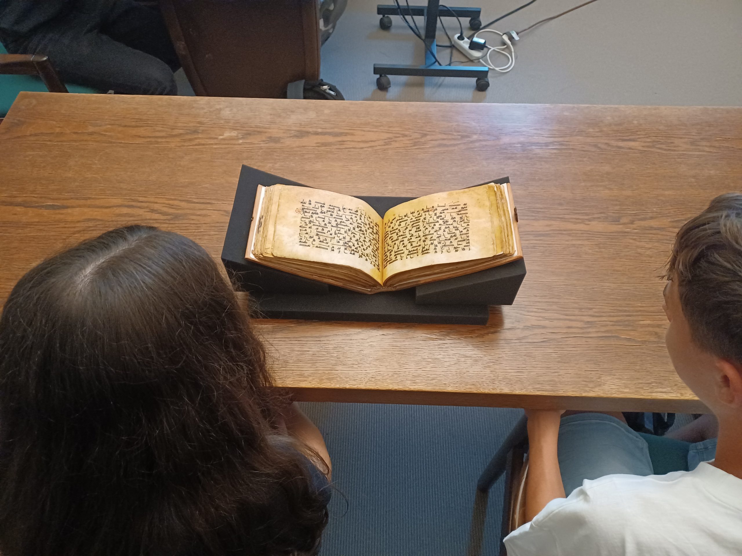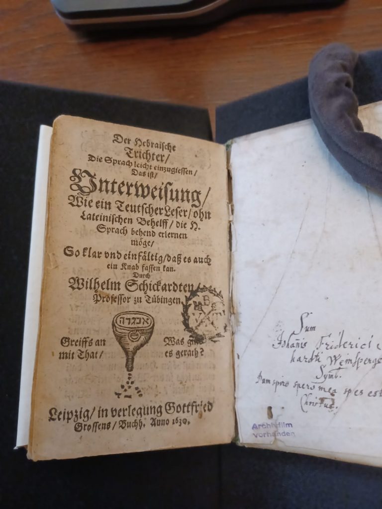 Zum Abschluss haben wir eine kleine Exkursion nach Tübingen unternommen, wo uns im prächtigen Altbau der Universitätsbibliothek ein paar besonders kostbare und sehenswerte Handschriften und Drucke in „unseren“ Sprachen gezeigt wurden. Besonders beeindruckt haben uns eine uralte islamische Handschrift aus der Zeit um 800 n.Chr. und das Hebräischlehrbuch eines gewissen Wilhelm Schickhardt.