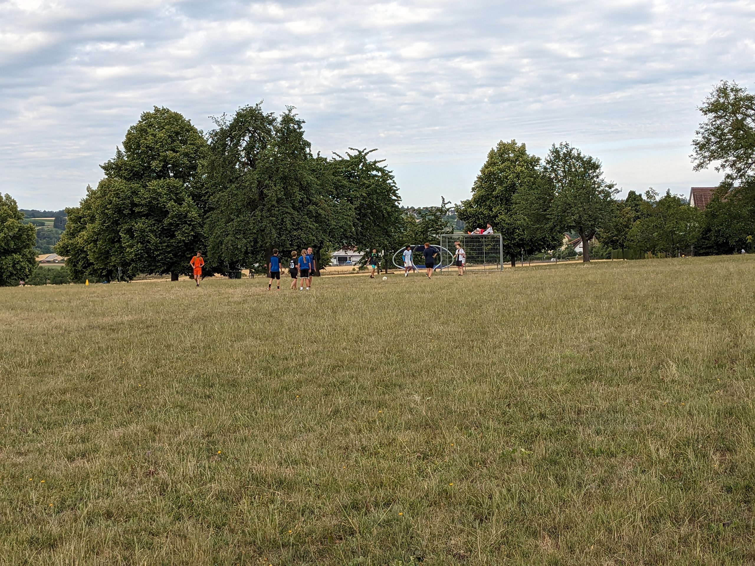 Der Leiter des Projekts, Bishara Nafea, antwortete uns auf die Frage, warum er das Projekt angeboten hat, ,,Weil ich Fußball mag.“ Zunächst übte er mit den Teilnehmerinnen und Teilnehmern das Passtraining, um deren Passgenauigkeit zu verbessern. Anschließend stand Schusstraining auf dem Trainingsplan. Das ist wichtig, weil man bei jedem Schuss anders und unterschiedlich stark schießen muss. Im Abschlussspiel zeigten die Spielerinnen und Spieler ihr Können. Auf unsere abschließende Frage, was er mit dem Projekt erreichen möchte, antwortete er: ,,Ich möchte, dass andere Kinder auch anfangen, Fußball zu spielen.“